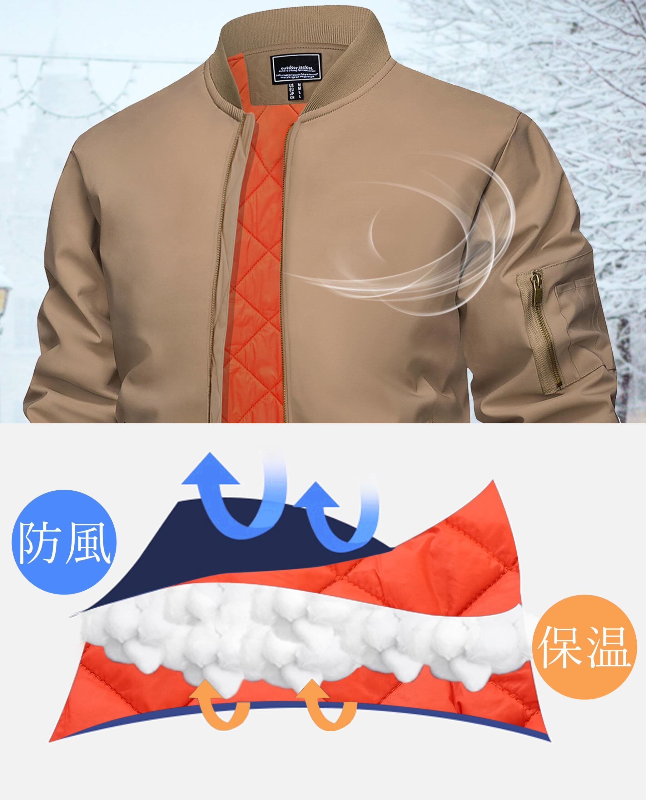 [KEFITEVD] ボンバージャケット メンズ 冬 防寒 ジャケット 大きいサイズ 中綿ジャンパー 厚手 撥水 カジュアル スタジャン ミリタリー ブルゾン バイク ストリート