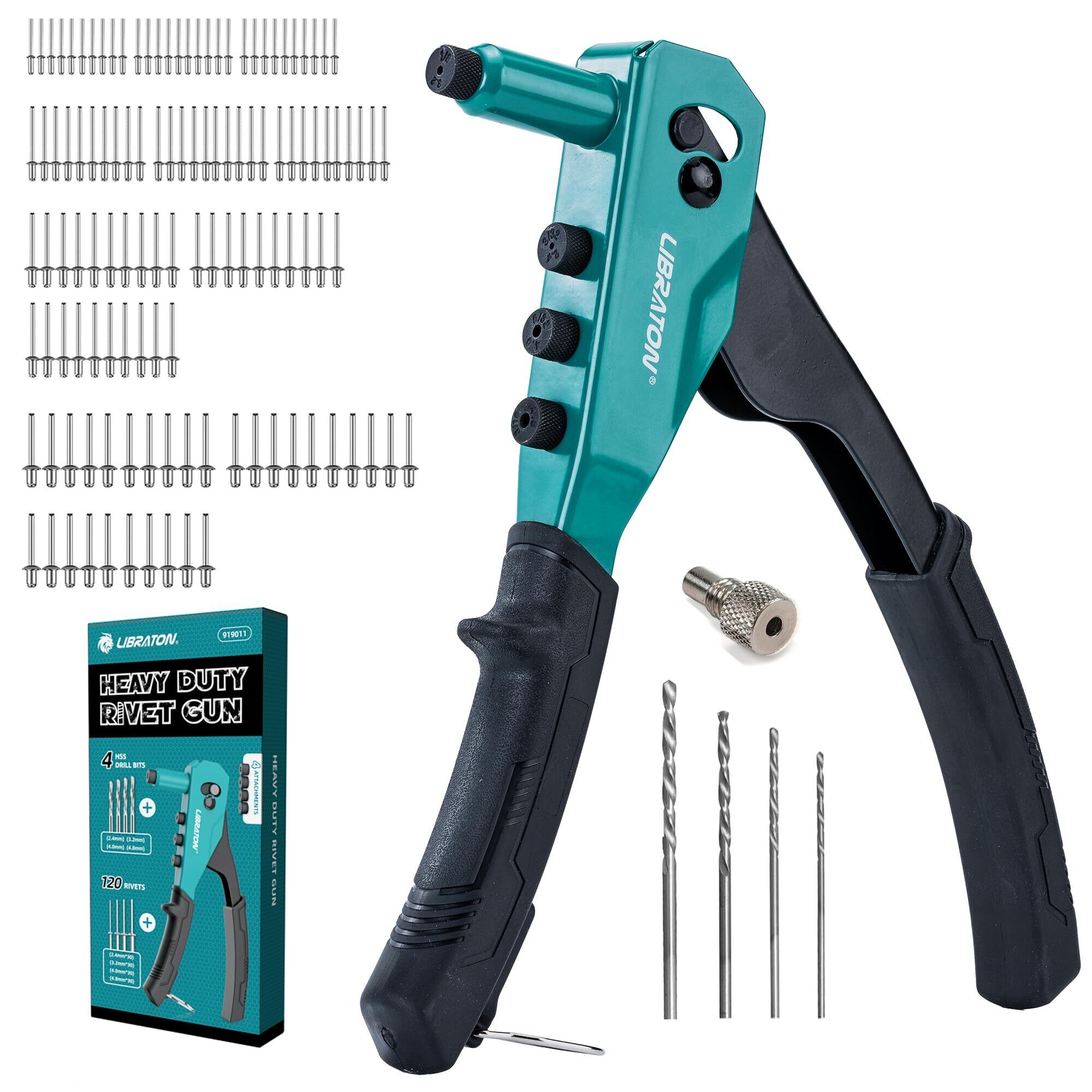 LIBRATON ハンドリベッターセット ブラインドリベット 120本付属 リベッター 工具 ドリルビット4本 ツールレスノーズピース4個 リベット打ち工具セット