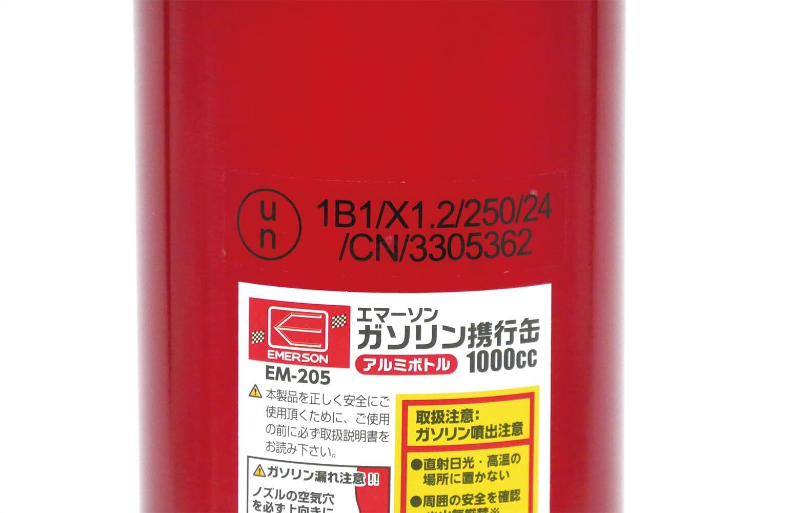 エマーソン(Emerson) ガソリン携行缶 軽量で持ち運びがラクラクなアルミボトル缶 1000cc 消防法適合品 UN 鋼板厚0.9mm以上 艶ある鮮やかなレッド 軽量230g 内容物表示ステッカー 収納袋付き アウトドア キャンプ ツーリング レジャー 農業機器 芝刈り EM-205