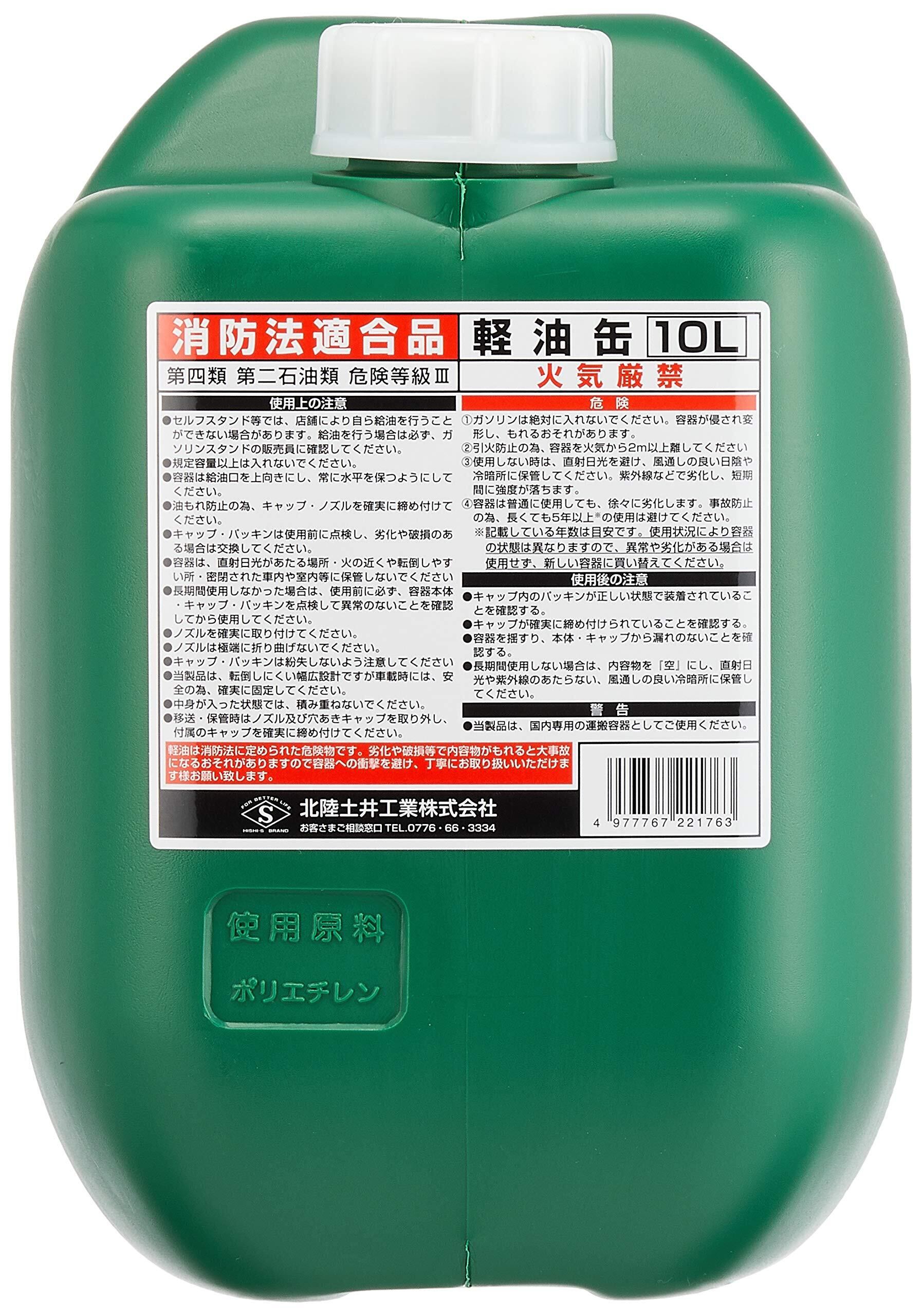 北陸土井工業 ヒシエス 軽油缶 10L(消防法適合品)ノズル付
