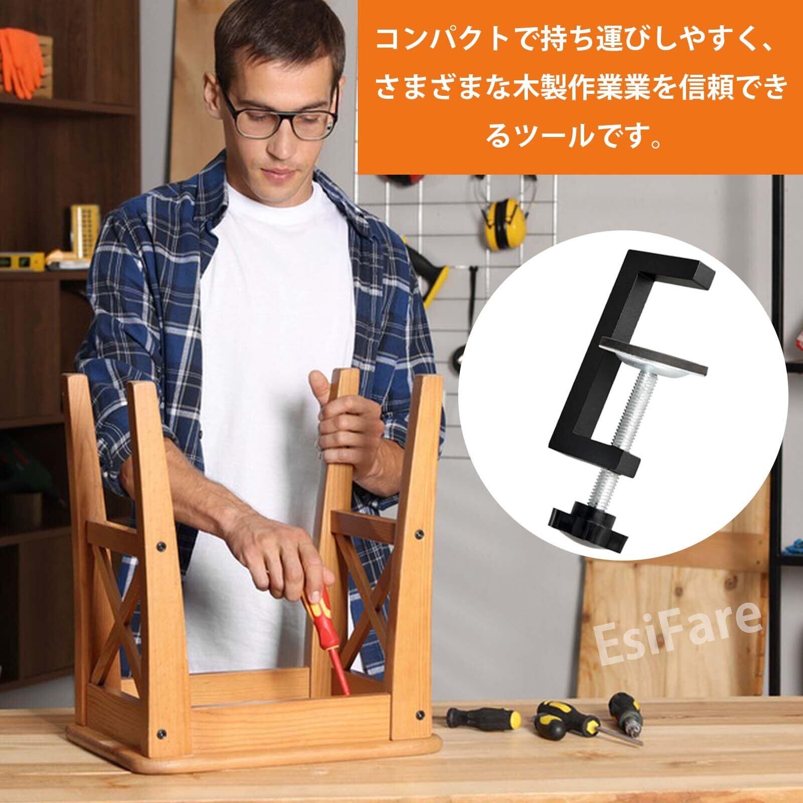 【使いやすい】:このfクランプ木工は、キャビネット、テーブルトップ、家具などに簡単かつ正確に取り付け、固定できます。さまざまなサイズ、厚さ、材質のパネルに適しています。長いネジを上下に回すことで、クランプとプレート間の距離を簡単に調整できます。 C型クランプは小型軽量で機動性・操作性に優れており、対象物に合わせて簡単に取り付け・分解・移動ができるため、現場での作業効率向上に役立ちます。