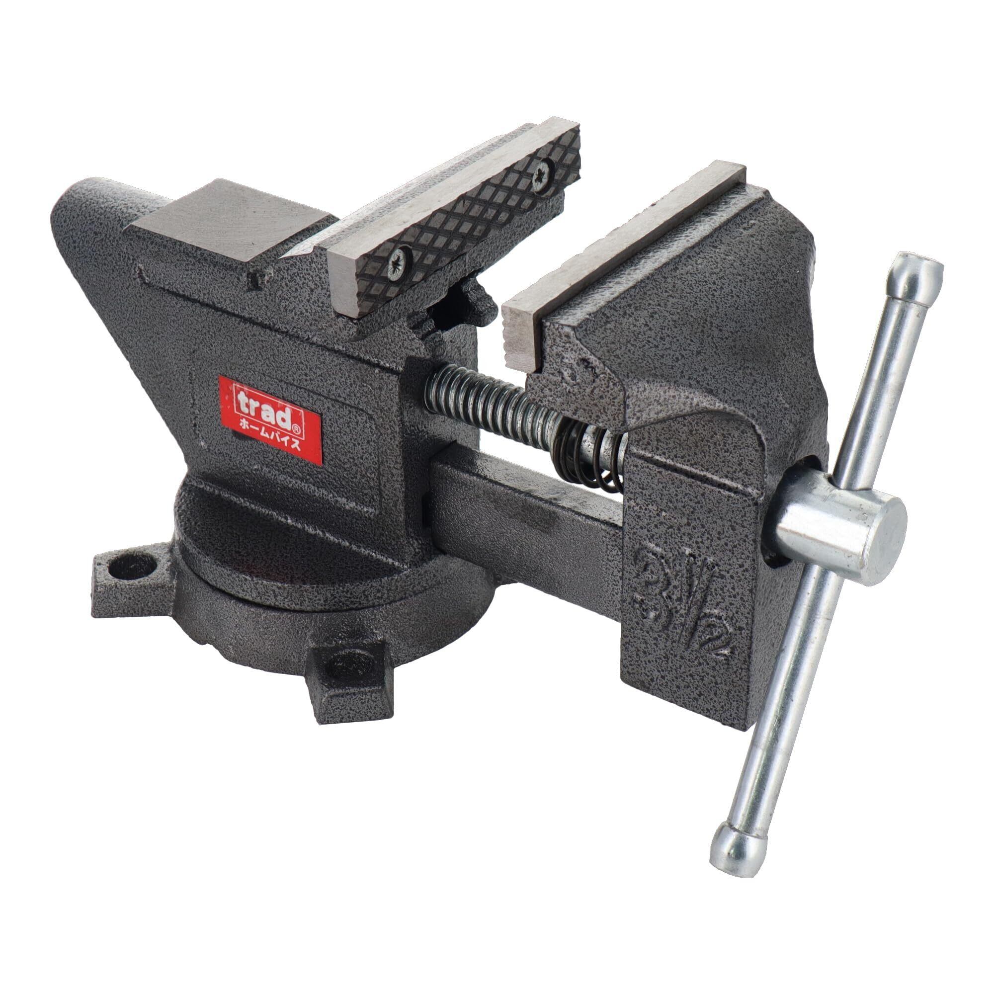 強靭な鋳鉄製。280度回転盤付きで加工に便利。バイスがくわえ部の下方に付いているので、パイプを挟みやすく切断がとても簡単です。