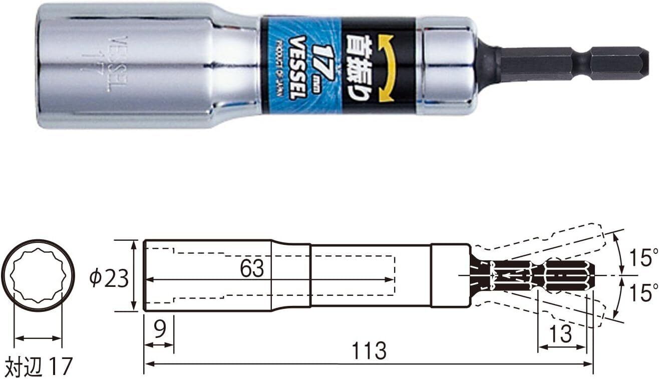 ベッセル(VESSEL) 首振りソケット 対辺17mm 12角 ユニバーサルタイプ WA201711