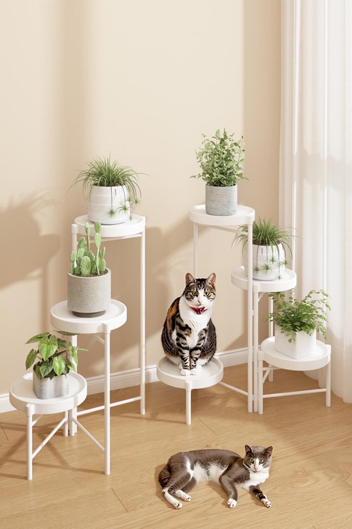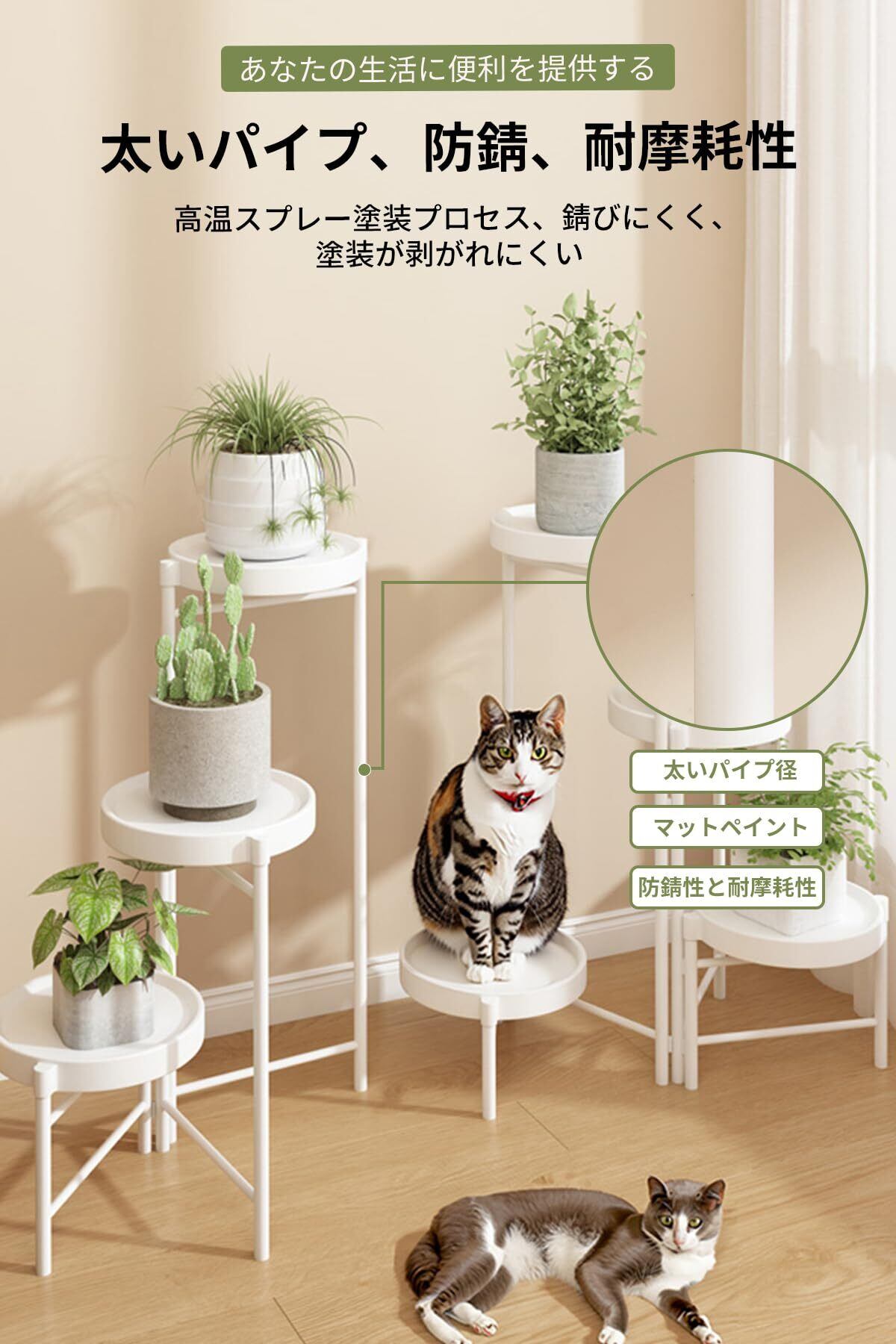 【高さのバランスが整っている】フラワースタンドの高さを組み合わせて調整し、バランスのとれた差別化したレベルで、さまざまなサイズの植木鉢を配置するのに使用できるため、植物を簡単に配置できます。