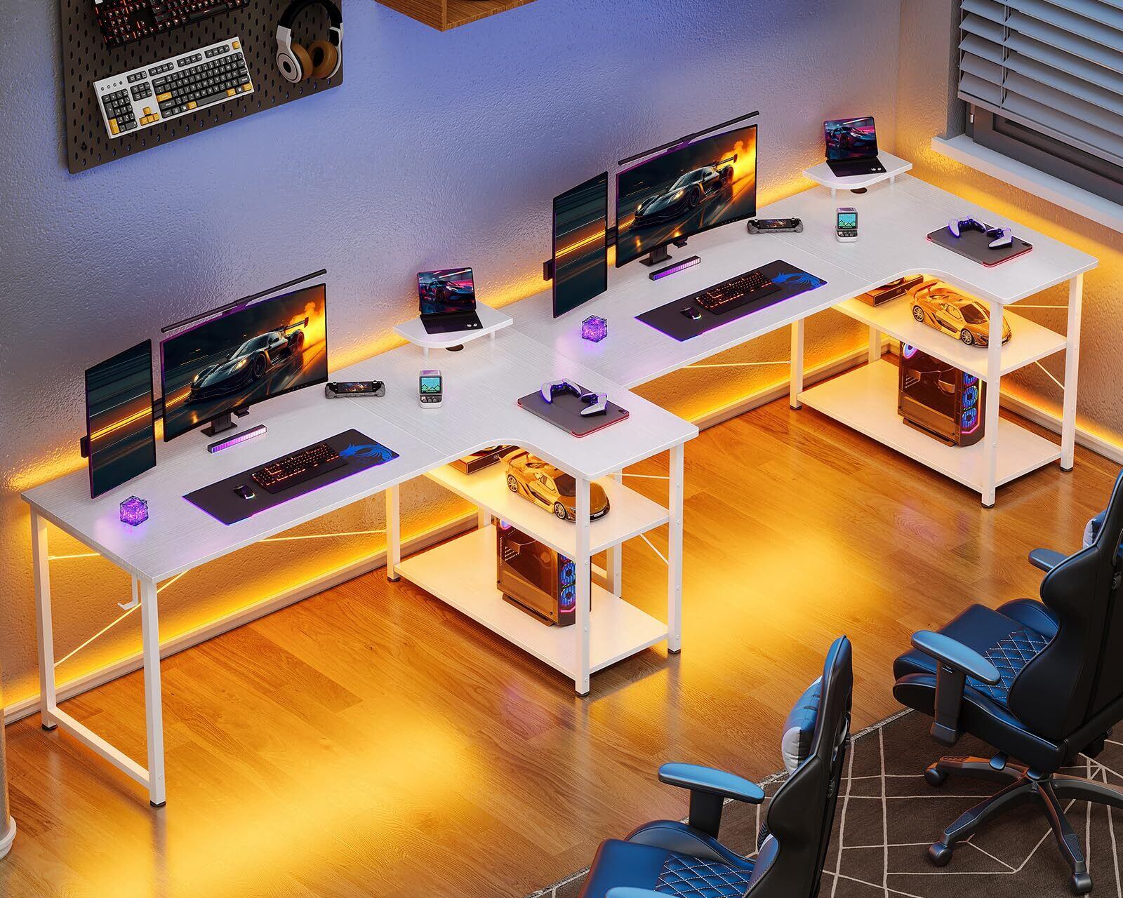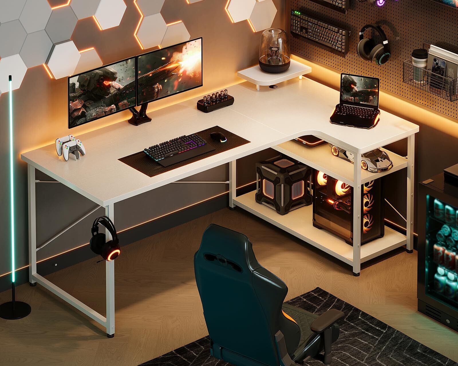 ODK ゲーミングデスク l字 パソコンデスク 幅130 机 デスク desk 棚付き 在宅勤務 pcデスク 桌子 勉強机 L字型 組立簡単 ホワイト 右棚