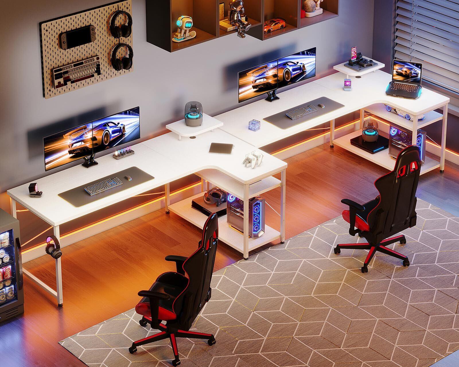【ゲームと仕事両立】L字ゲーミングデスクは実用性が高く、ゲームプレイ、在宅勤務、書斎机、勉強机など様々なシーンで大活躍!モニター台を利用して目線をあげることで、作業時の姿勢を改善し、テレワークが快適になり、作業効率も格段に上がります。