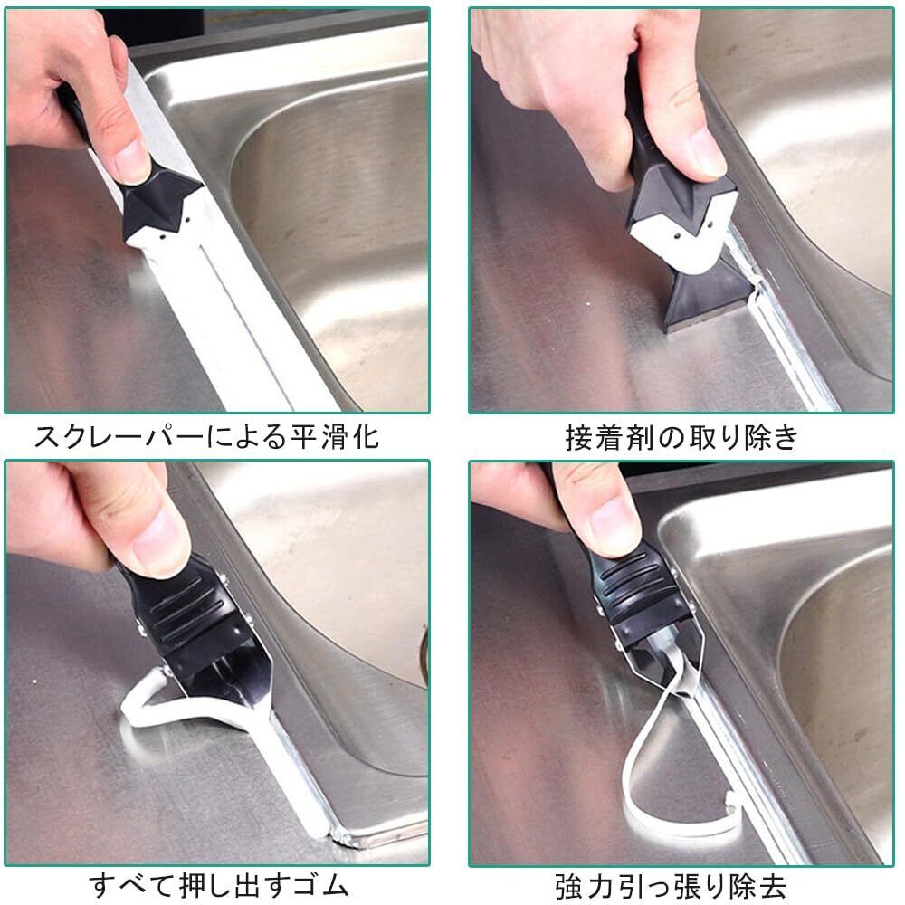 【多機能】金属スクレーパーで頑固な古い接着剤やシーリング剤を強力に除去。特殊設計のツールで狭い隙間も簡単に処理できます。