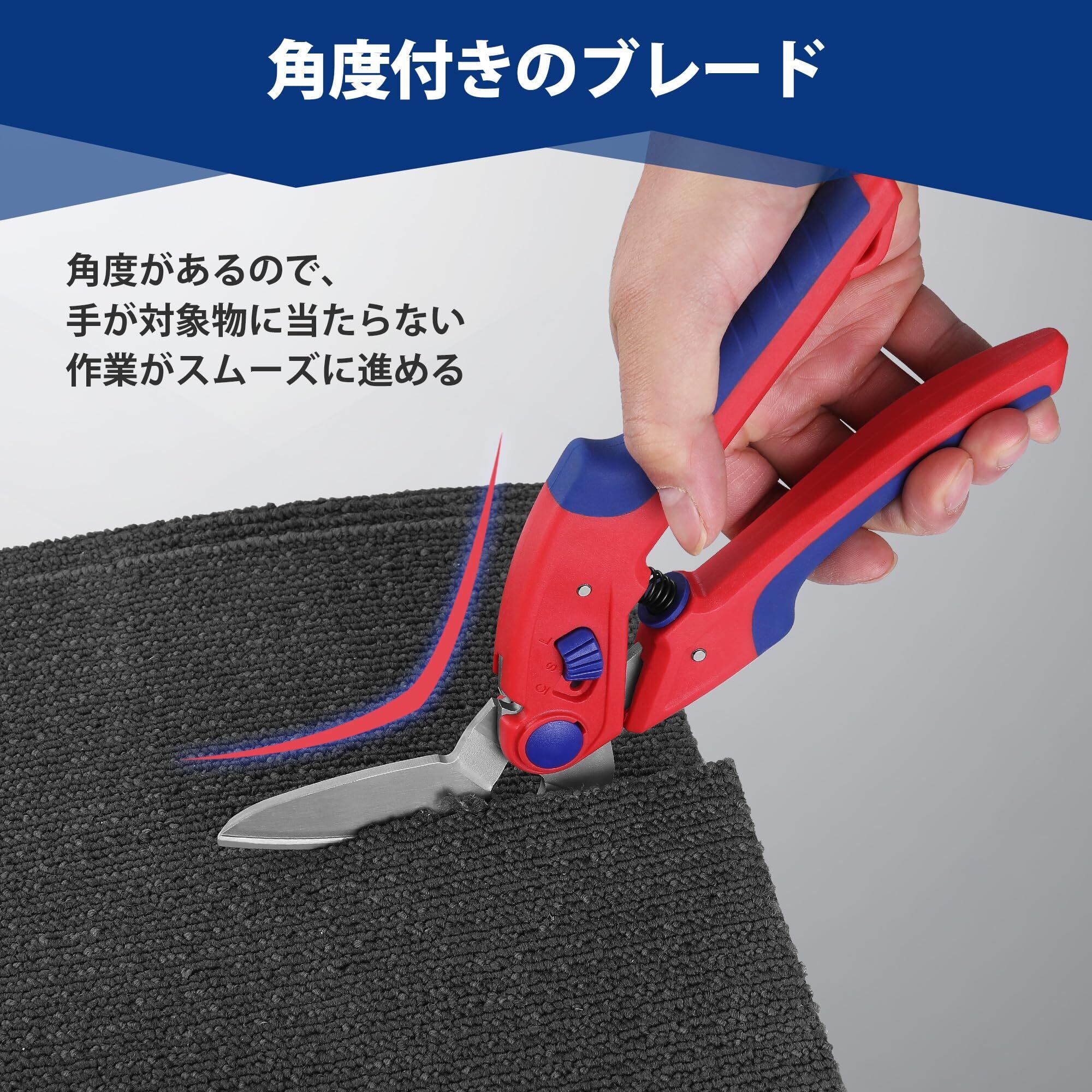 【調整可能な開口幅】ハンドルに装備された2段階調整可能なロックノブを使って、作業内容に応じて切断幅を簡単に変更できます。これにより、異なる素材やサイズの切断がより効率的に行えます。
