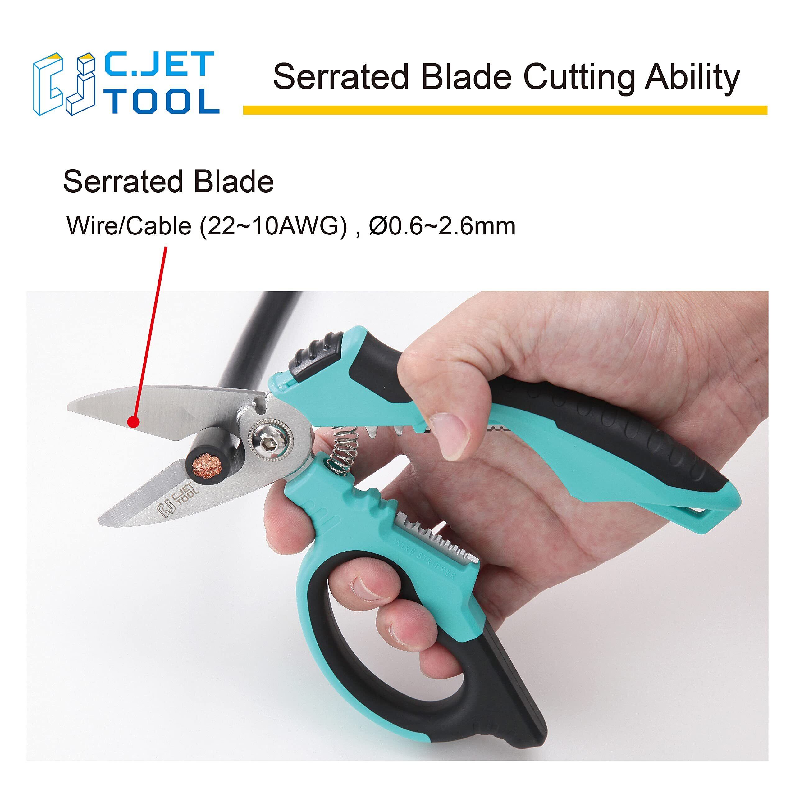 C.Jet Tool 電工ハサミ ステンレス鋼製 電気技師 電気工事用 角度付き 倍力型 強力 はさみ 金属 電気ケーブル ワイヤー 切断工具 多機能ハサミ 多用途タイプ コンパクト はさみ 200mm