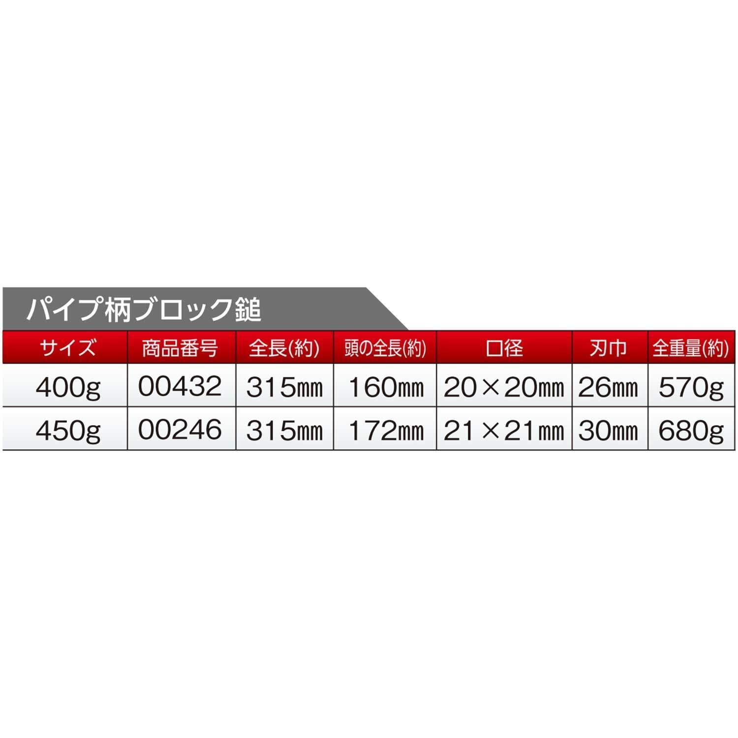 土牛 パイプ柄ブロック鎚 450G 全長315mm