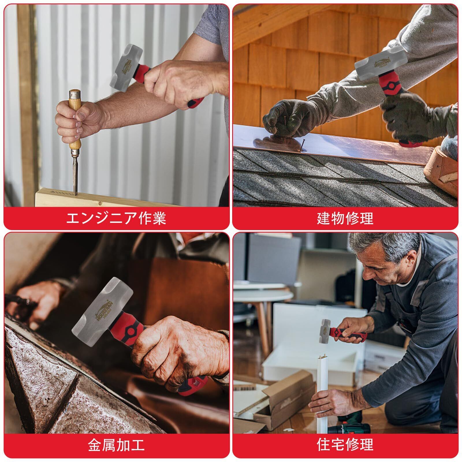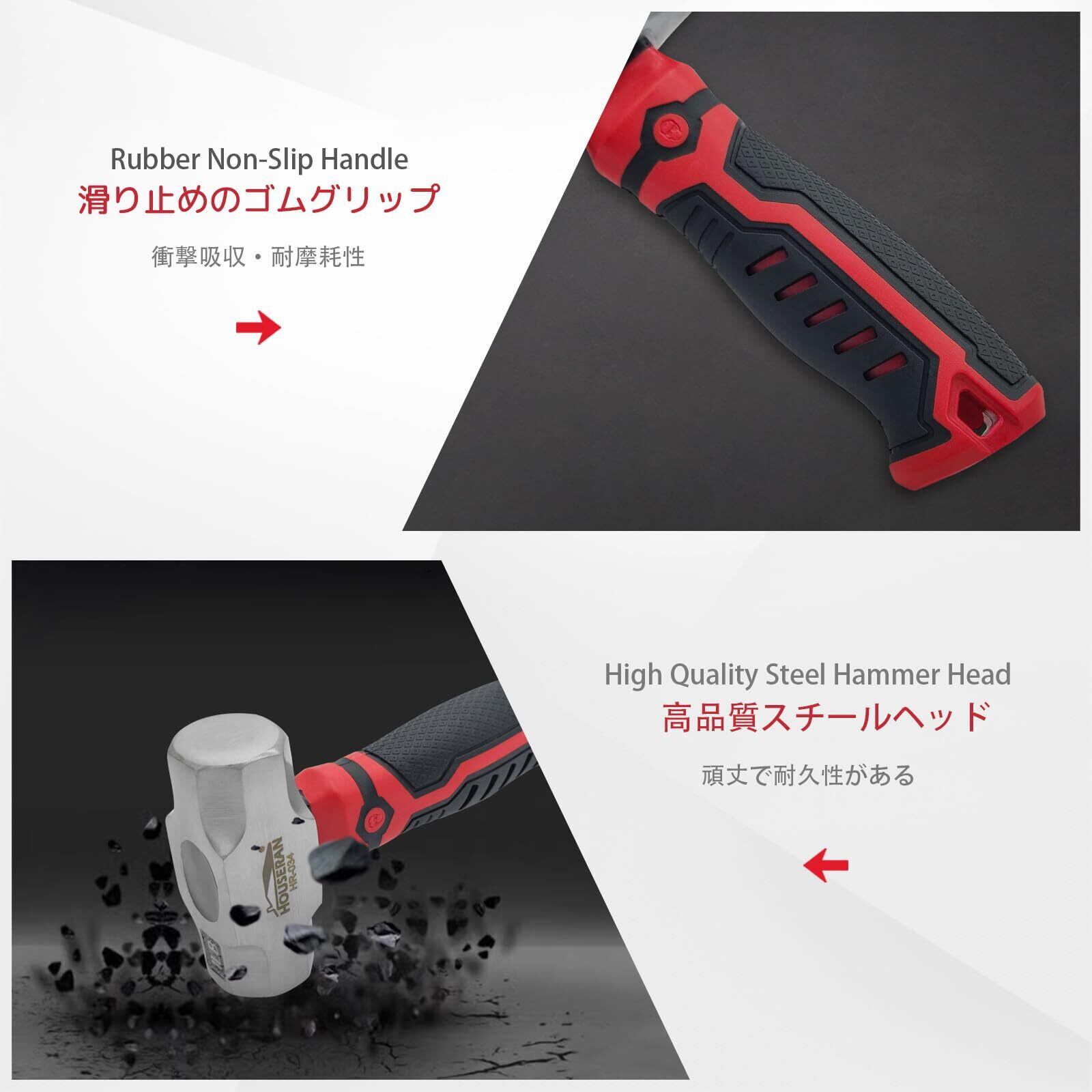 HOUSERAN 両口ハンマー 金槌 小型 ハンマー 石頭ハンマー 八角 かなづち かなずちハンマー 工具ハンマー ショートハンマー