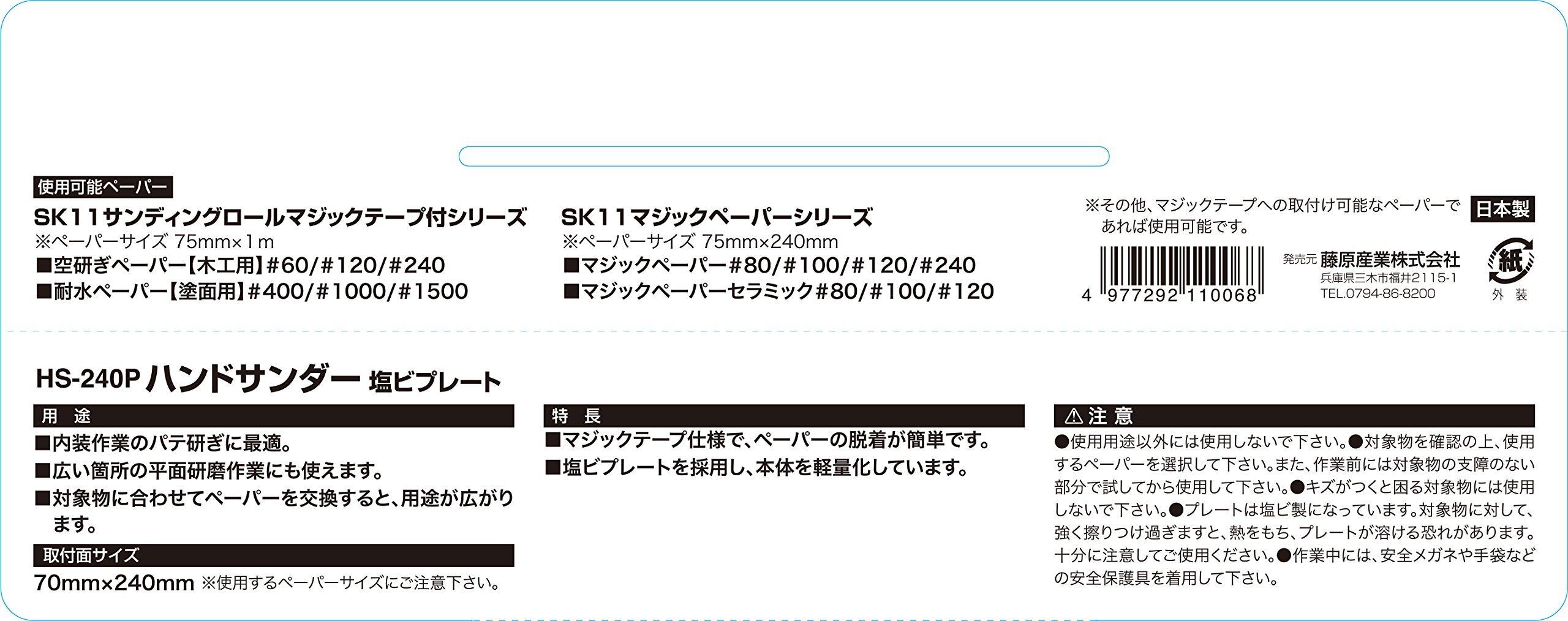SK11(エスケー11) ハンドサンダー 軽量 塩ビプレート HS-240P マジックテープ式