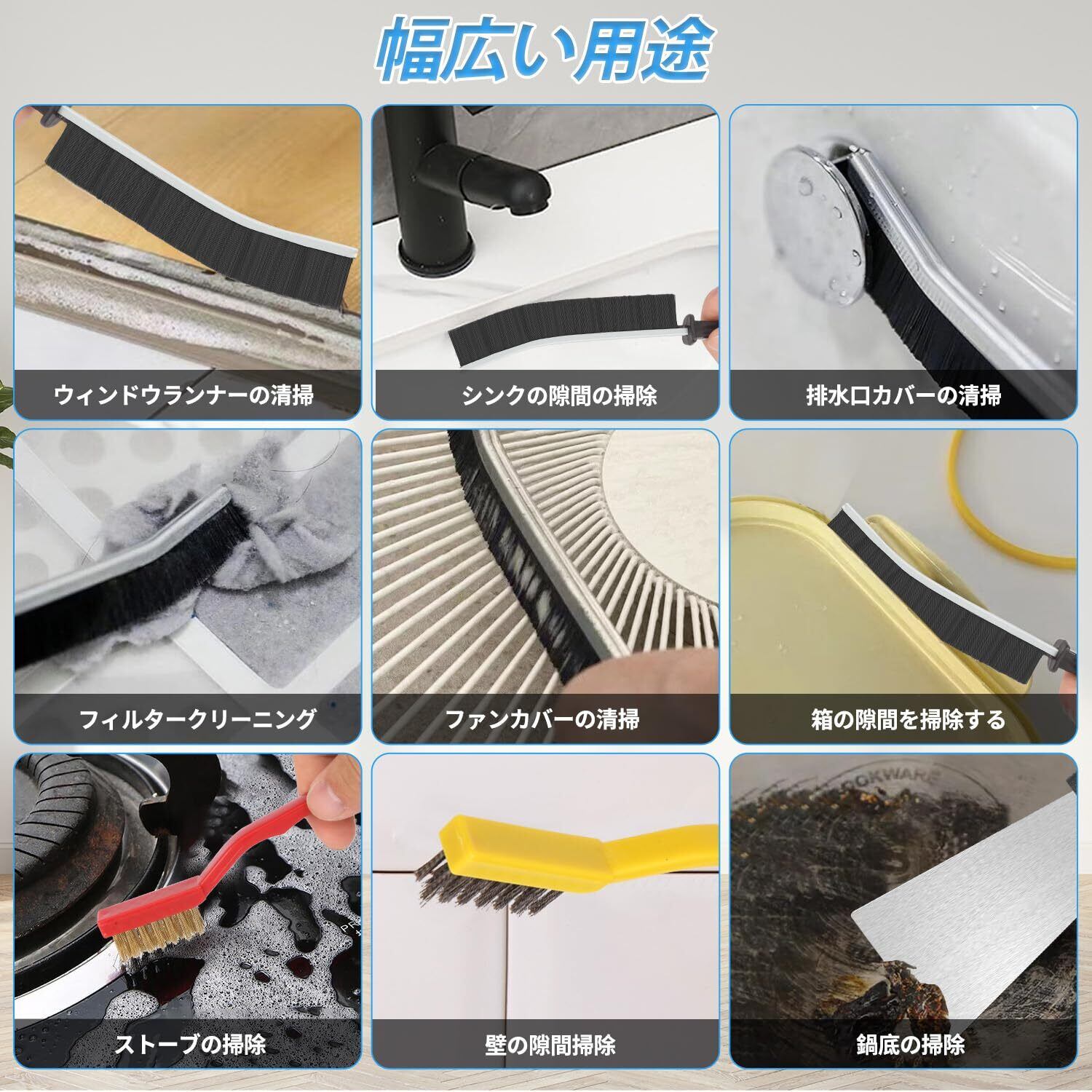 商品用途・使用方法 キッチン シンク、サッシブラシ、お風呂、トイレ、エアコン、網戸、冷凍庫 霜取り、サビ落とし