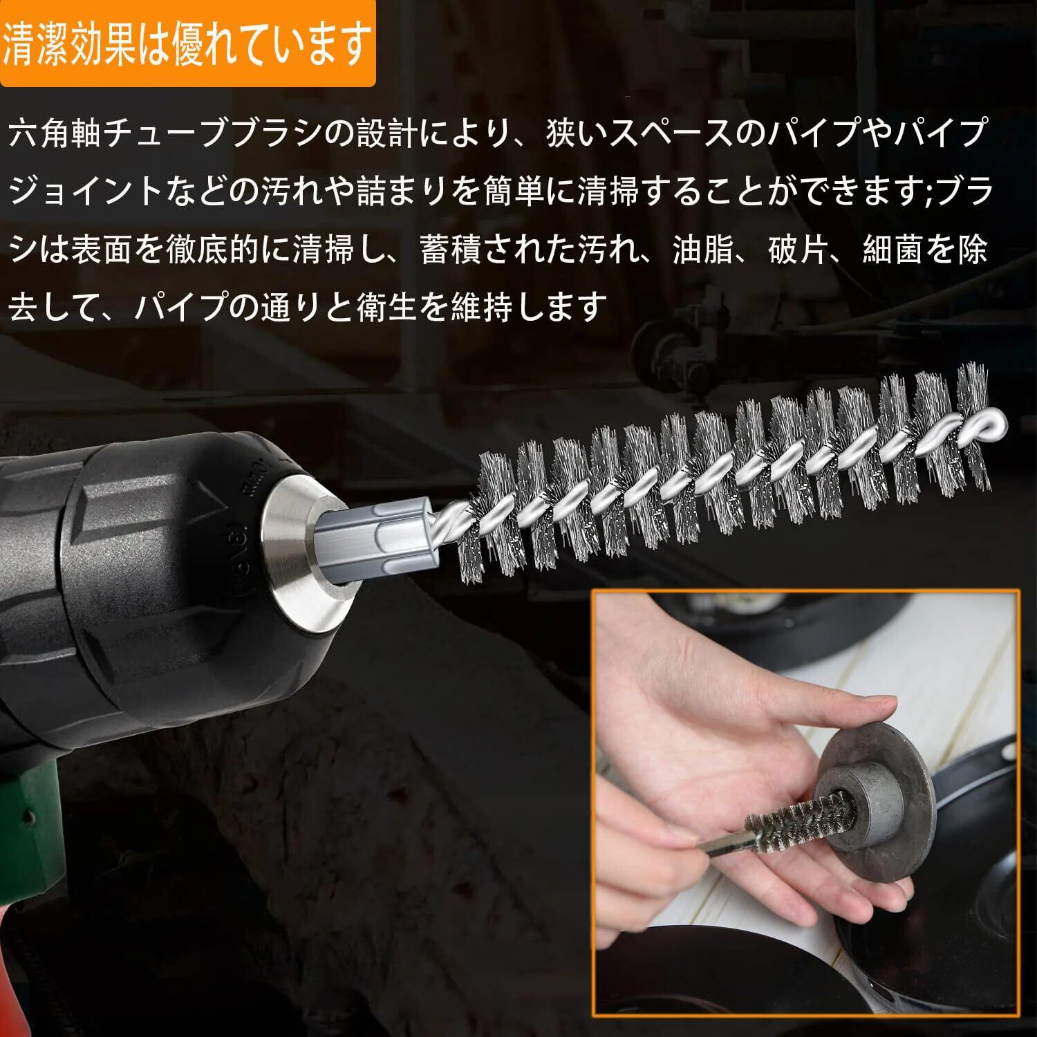 【高品質な素材】ワイヤーブラシ高品質のステンレス鋼と真鍮で作られた六角軸チューブブラシです、高い耐摩性と耐食性が備え、各種の金属穴の研磨とバリを取り除くことに役立ちます