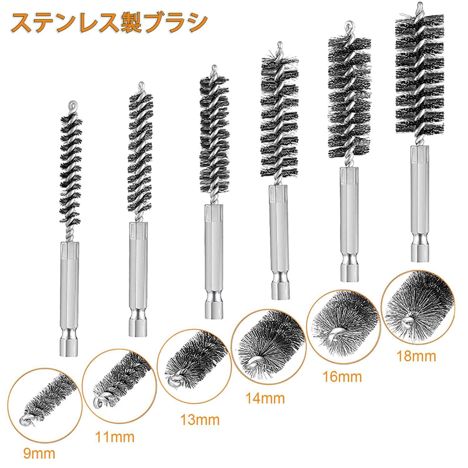 セット内容: 全ては12本のチューブクリーニングブラシがありま す;規格:ステンレス製ブラシ(9MM、11MM、13MM、14MM、16MM、18MM)、真鍮製ブラシ(8MM、10MM、12MM、15MM、17MM、19MM)