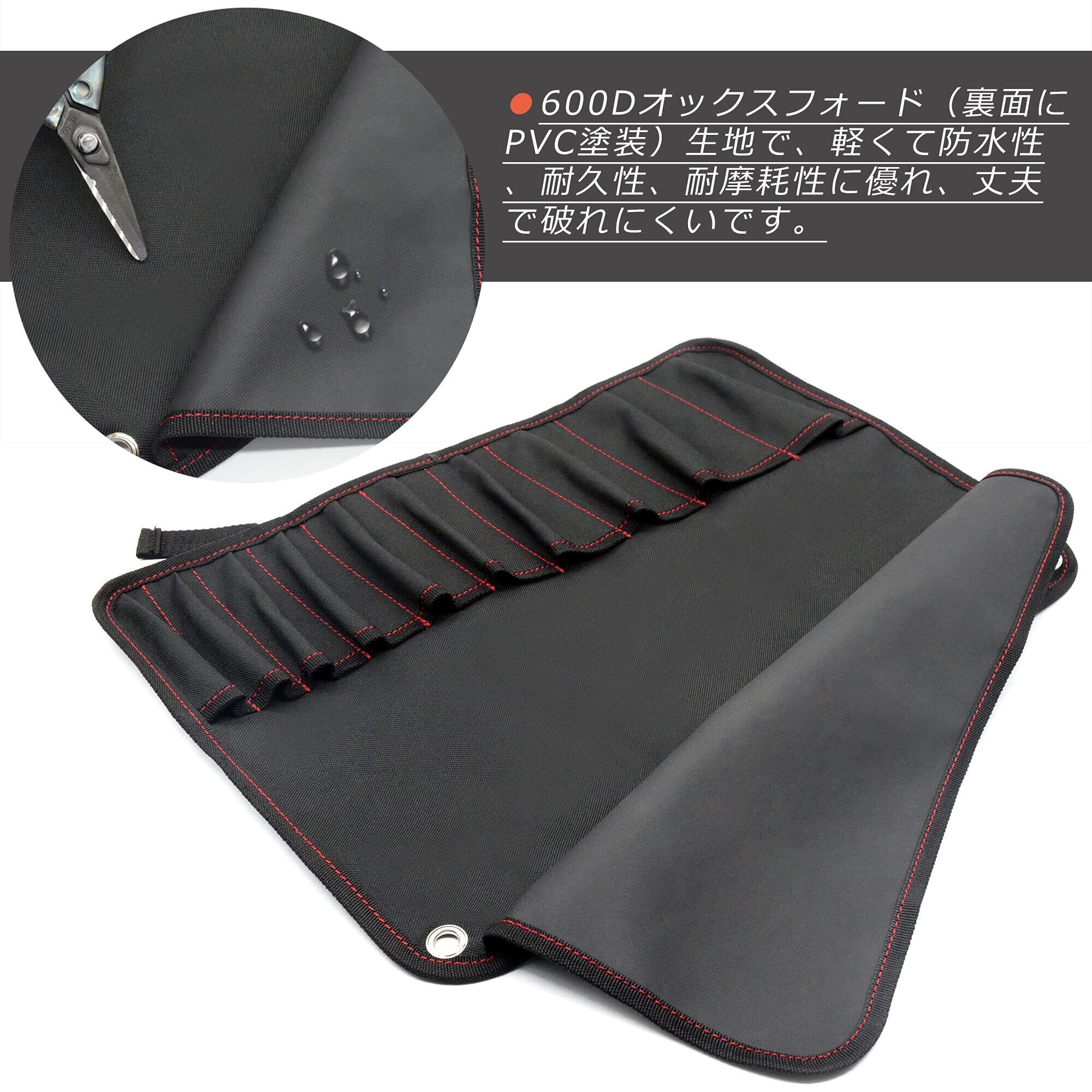 容天下\YOTENKA ツールロール ロールケース ツールロールポーチ 工具入れ レンチ スパナ プライヤー ドライバー ホルダー ツールバッグ 工具袋 道具 収納 折りたたみ 長いベルト 600Dオックスフォード 防水 軽量 ブラック