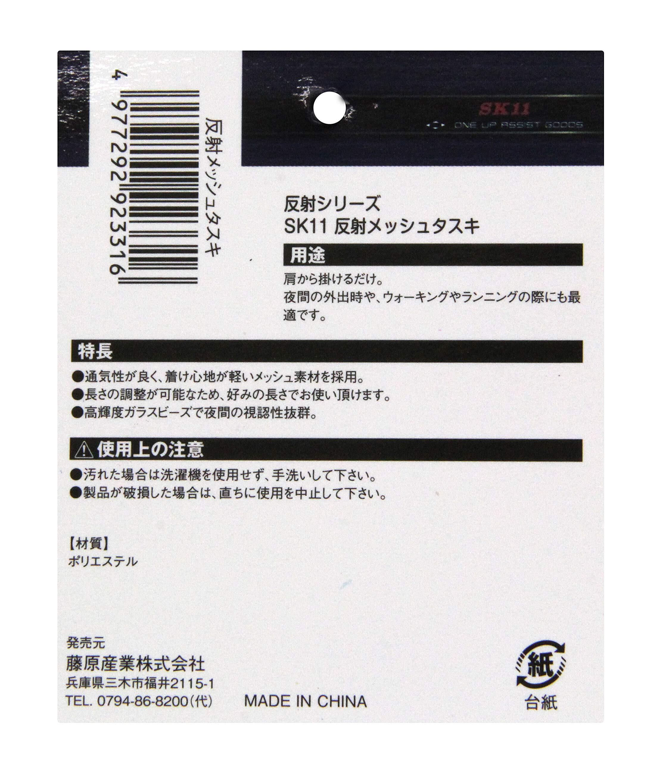 SK11 反射メッシュタスキ マジックテープ式 イエロー 高輝度 ガラスビーズ REFTUS-Y