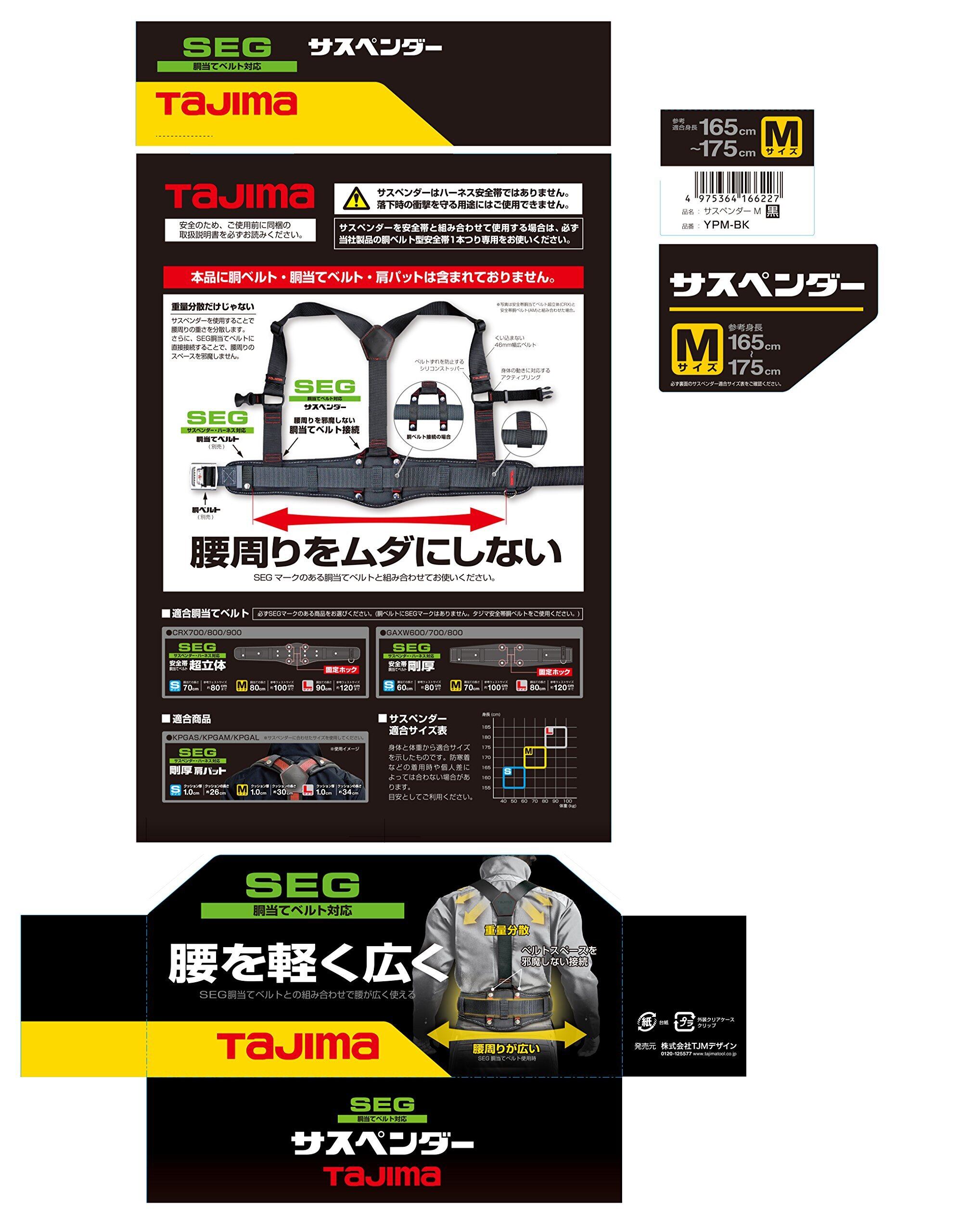 タジマ(Tajima) 安全帯 サスペンダー M 黒 YPM-BK [落下防止 電気工事 高所での安全作業]