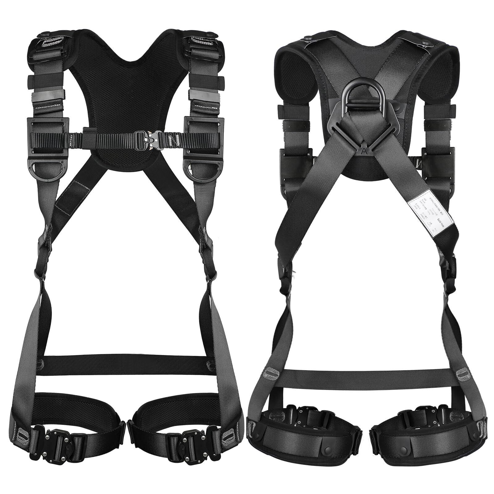 [Baldr Hoder] フルハーネス 安全帯 新規格 軽量化 肩パッド付き ワンタッチ式バックル カンタンに着脱 腰道具を付けたまま脱ぎ着しやすい 水平型腿ベルト 100kg 太もも紐の最大長84cm落下防止 電気工事 高所での安全作業 消防 空中作業に適しています 屋根の修理 林業伐採