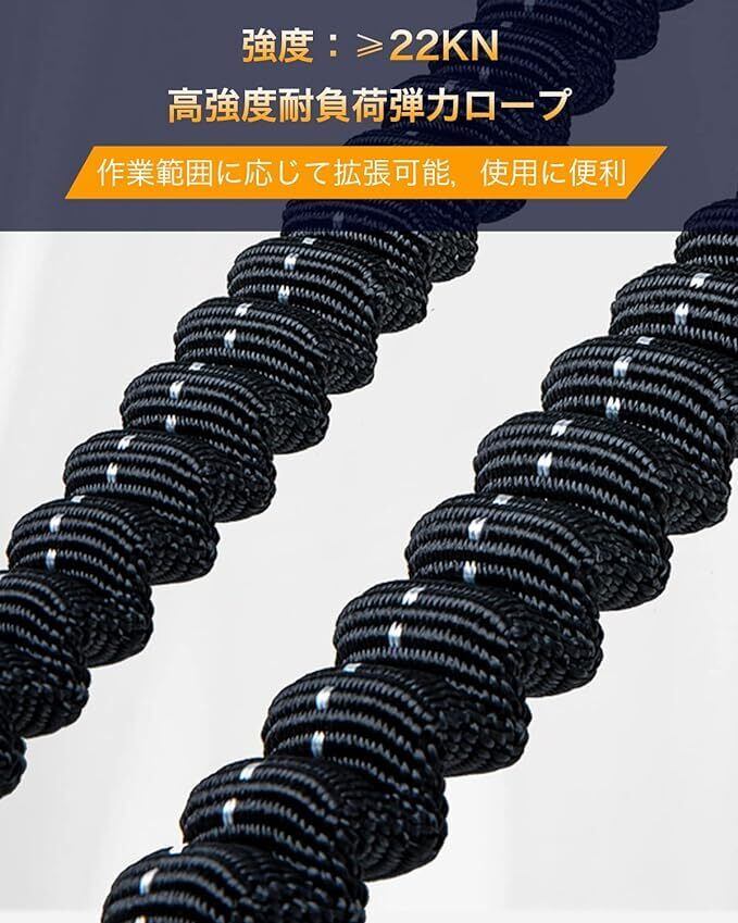 【 2丁掛伸縮式ランヤード】ランヤード 2丁掛け 新規格、使用可能な質量:100 kg。高強度のポリエステル素材でできており、しっかりと織られ、高い耐荷重性と耐摩耗性を備えています。