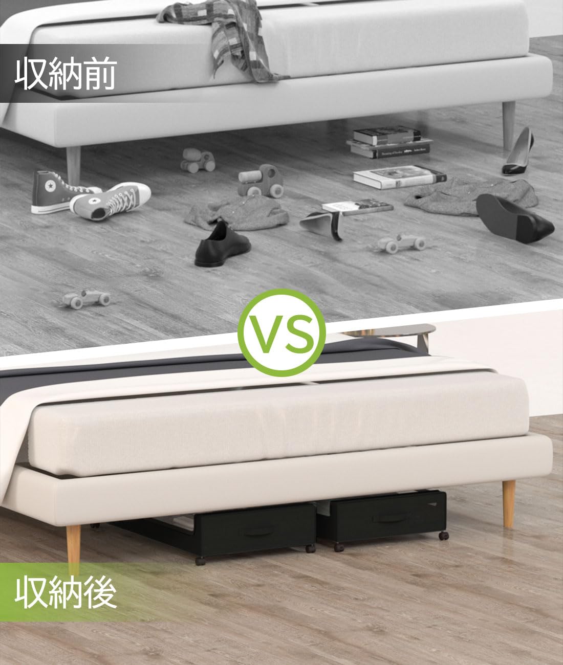 【取り付け簡単】詳細な説明書が付属しており、組み立てが簡単です。 ベッド、ソファ、デスクの下にフィットし、衣類、おもちゃ、毛布、本、その他のアイテムを保管し、家の散らかりを減らします。美しいデザインは部屋の装飾にもなります。
