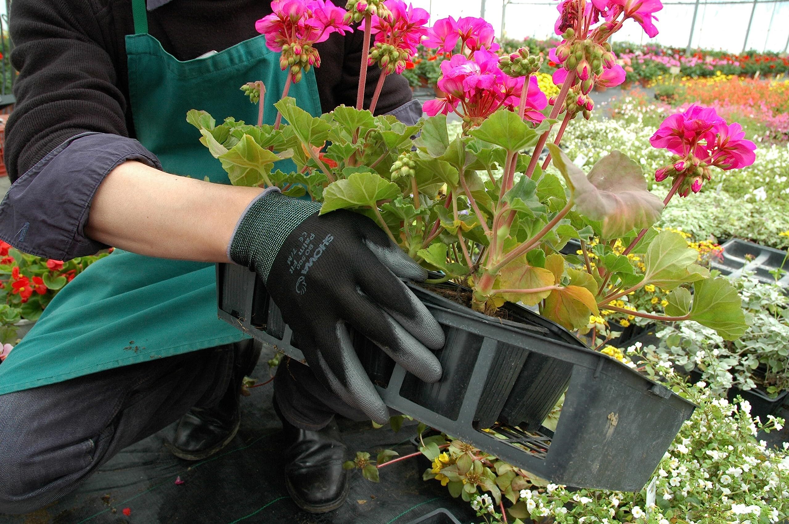 ●繊維部分は編み目が細かく縫い合わせのない、独自の13ゲージ・シームレス編み手袋です。