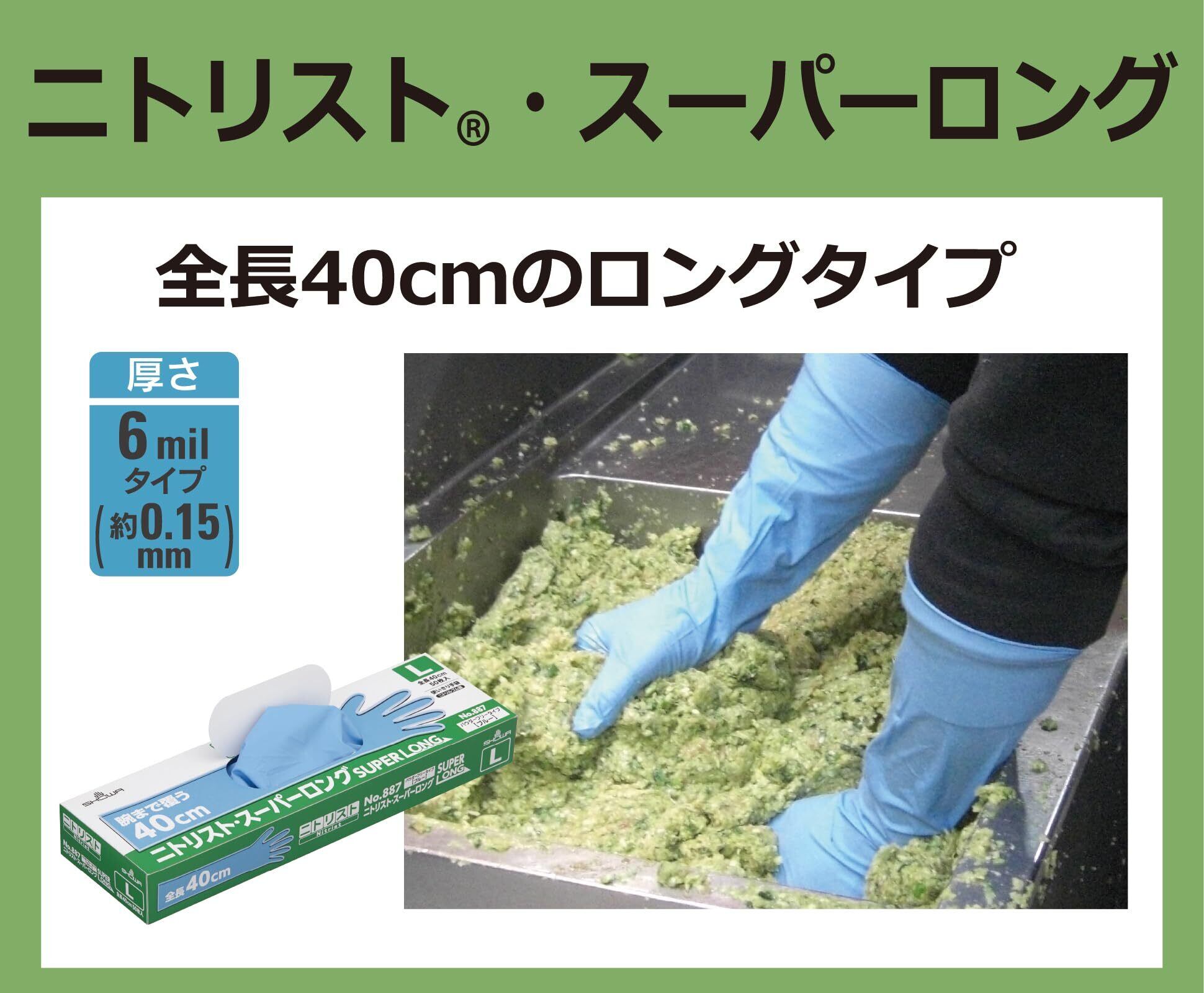【パウダーフリー】 ショーワグローブ(Showaglove) No.887 ニトリスト・スーパーロング 50枚入 ブルー Lサイズ 1函