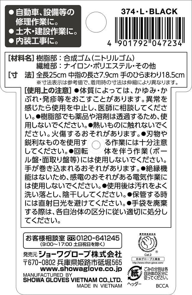 [ショーワグローブ] 軽作業用手袋・ニトリルゴムコーティング No.374 マイクログリップ ニトブラック(タグ付) Lサイズ 1双 滑り止め DIY 運搬