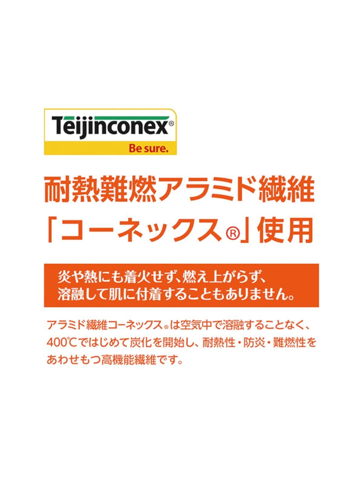 ●耐熱防炎難燃繊維を使用していますので、炎や熱にも着火せず、燃え上がらず、溶融して肌に付着することもありません。●内側がパイル編みになっていますので厚みのある組成を実現し、クッション性・強度に優れています。●手首を折り返して二重にしているので、優しいはめ心地です。●腕の形に合わせて台形に編んでいますので、腕にフィットします。●オーブンや窯での作業などに最適です。