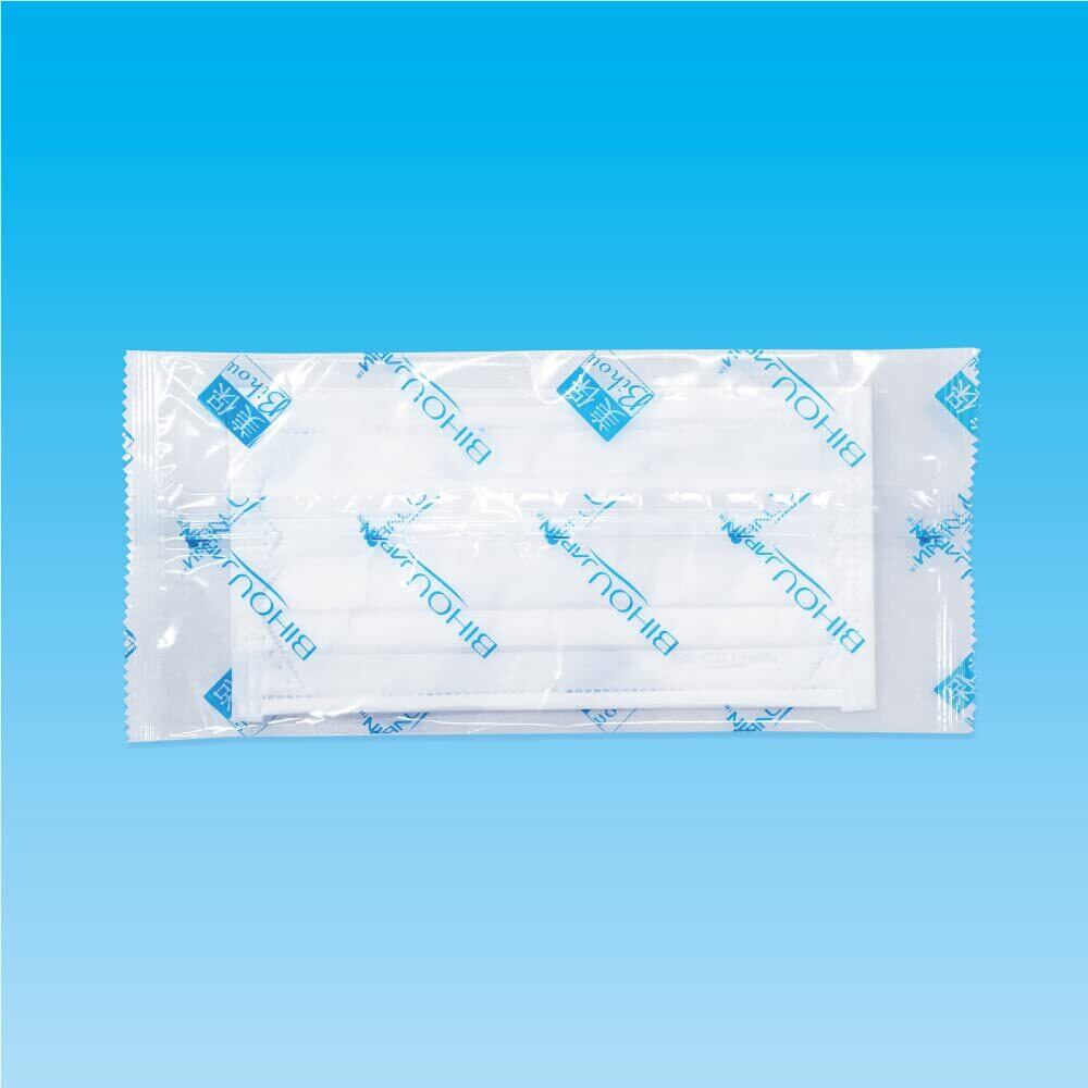 【マスク 安心の日本製 使い捨て不織布マスク フリーサイズ 耳が痛くならない平ゴム・ソフト生地仕様 軽い着け心地 花粉・ウイルス・飛沫防止】 Bihou(ビホウ) おとな用まっ白なやさしいマスク(個包装) 30枚入