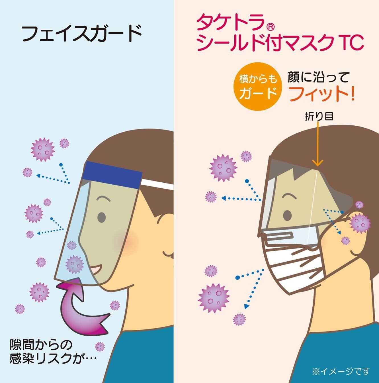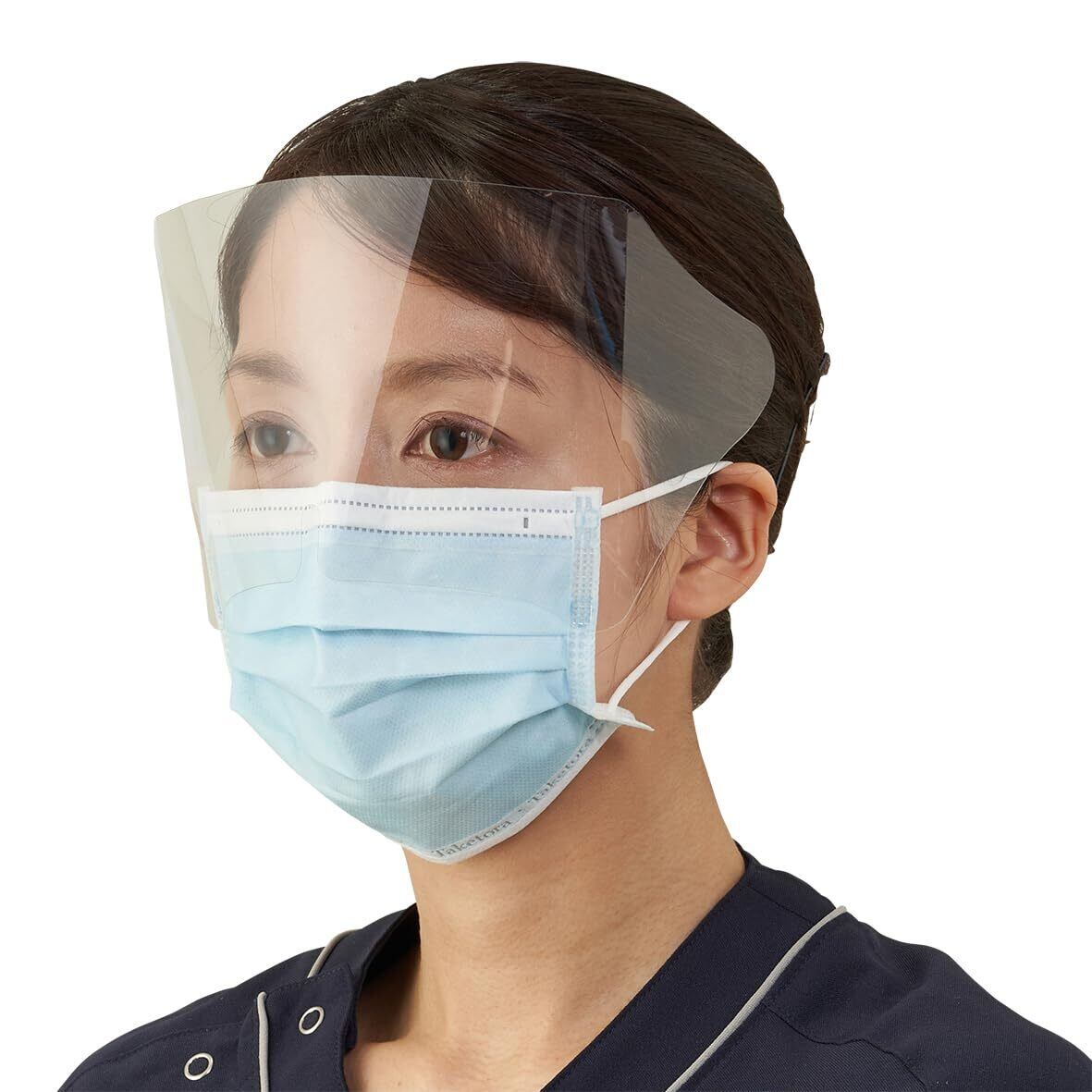 マスクとシールドが一体となり眼・鼻・口を守ります。