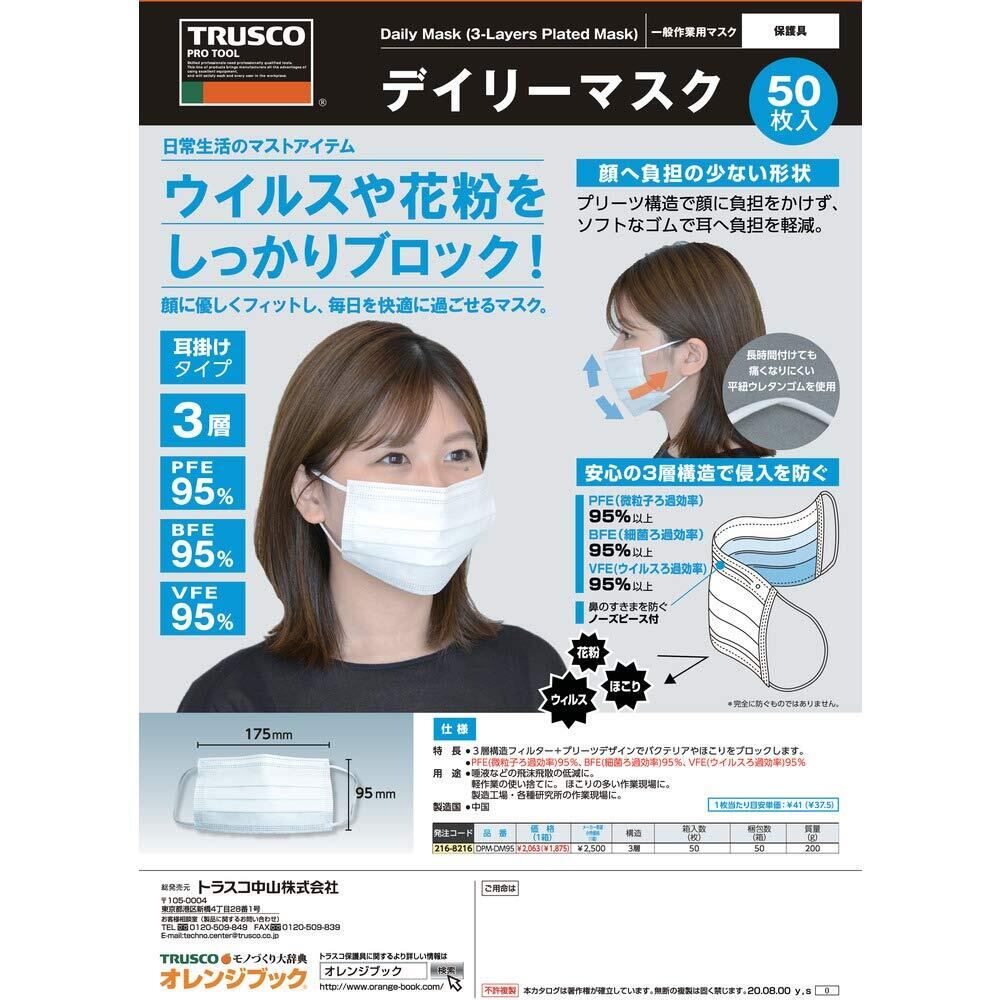 トラスコ中山(TRUSCO) デイリーマスク 耳掛けタイプ 大人用 3層 ホワイト 50枚入 DPM-DM95