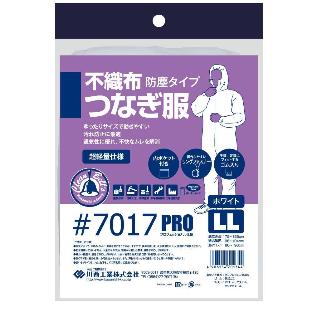 川西工業 不織布つなぎ服 防塵タイプ LL #7017