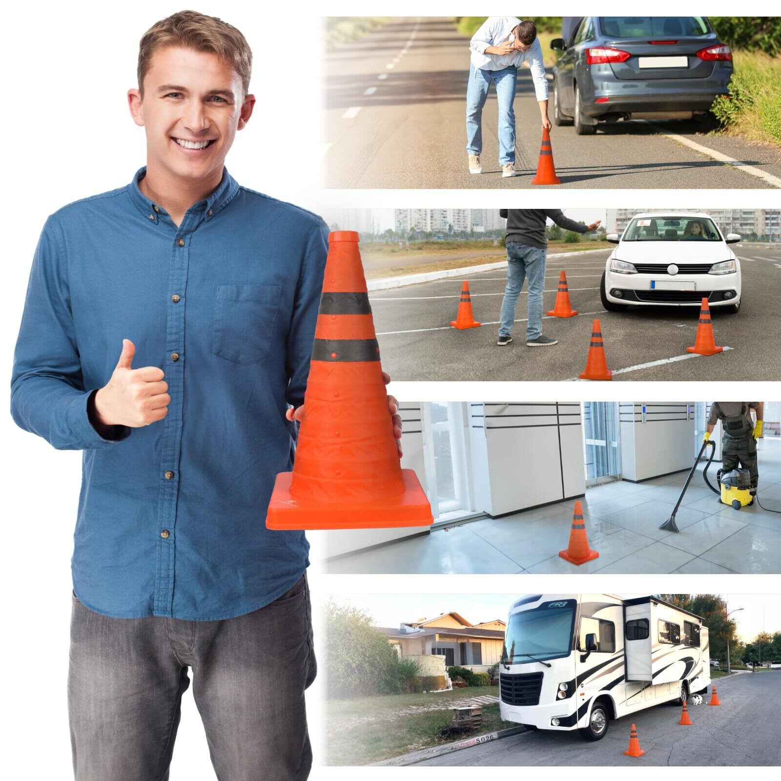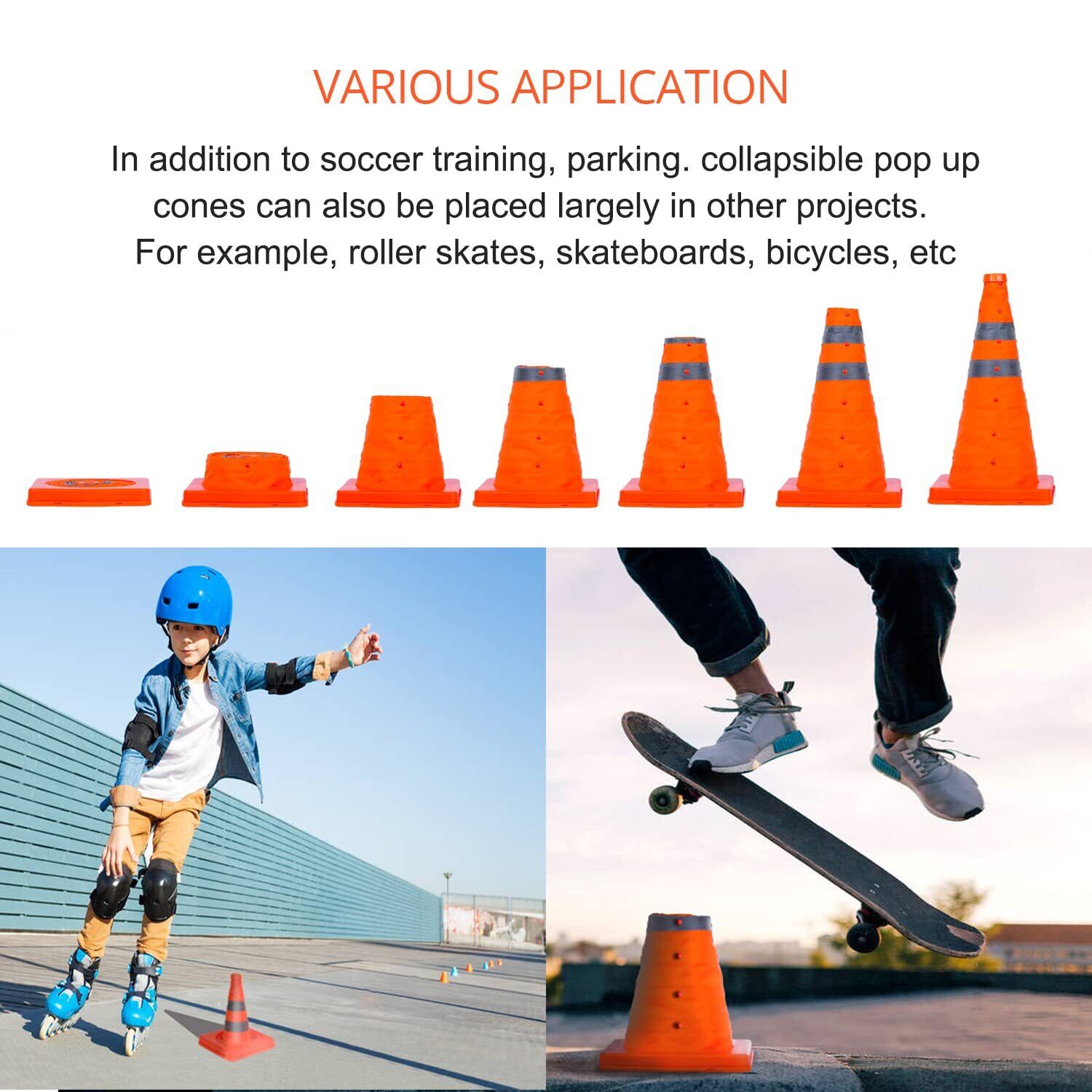 【いろいろなシーンに大活躍】三角コーンは、緊急対応要員、自治体、学校、駐車場、スポーツイベント、建設/工業用地、ユーティリティトラック、レッカー車、キャンプ、注意エリアの作成、または子供がドライブウェイや遊び場で遊ぶための安全な場所のマークを付けるのに最適です。