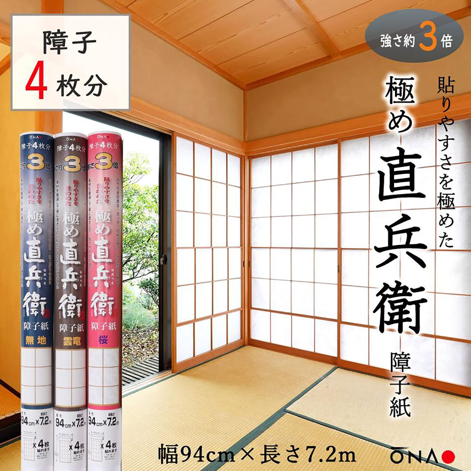 大直 障子紙 極め直兵衛(なおべえ) 巾94cm×長さ7.2m(4枚分) 強さ約3倍 一枚貼り 日本製 無地 KN-101 【貼りやすさをきわめた障子紙】