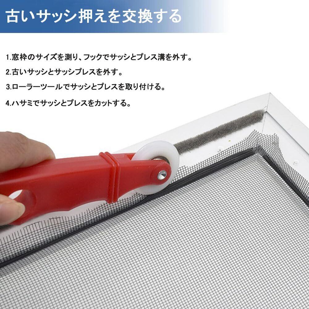 【製品サイズ】網戸 張り替え用 ローラー 長さ: 200mm 、対応ゴム: 2.5mm-5.5mm。網戸用 網押えゴム 太さ約4.5mm、長さ: 10m巻(幅が2.5mm~4.0mm程度の溝を持つ枠に使用できます)。