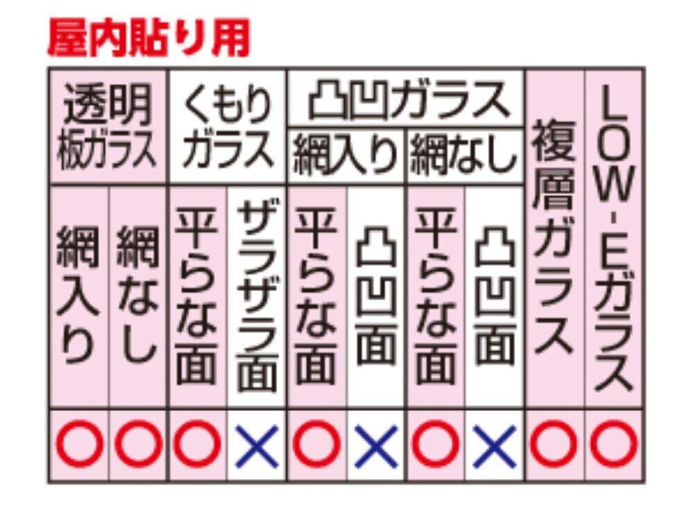 ※ガラス以外には貼らないでください。※貼る面が三次曲面や凸凹・ザラザラ面、また屋外での使用は避けてください