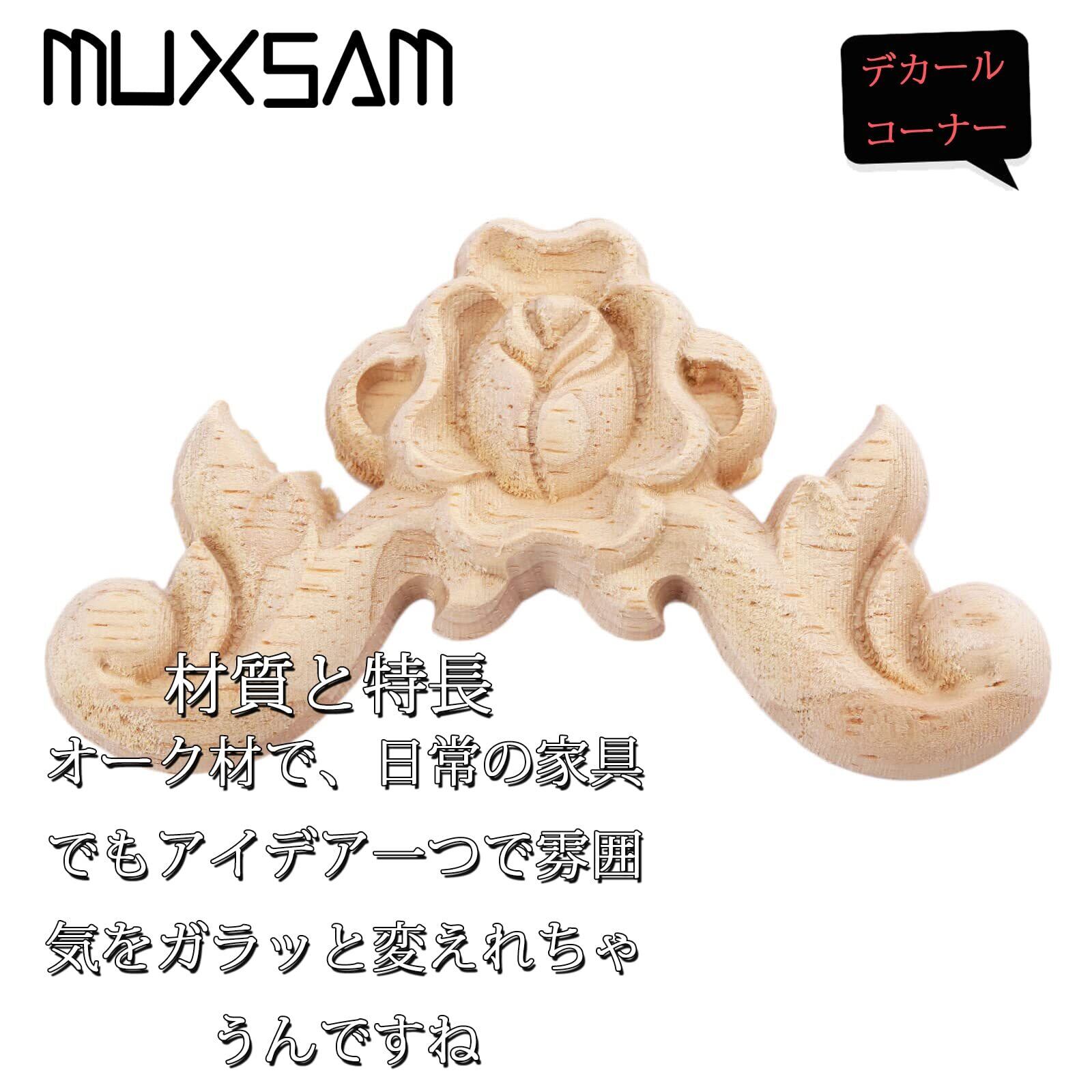 4枚入りセット 木彫りデカールコーナー 木製アップリケ 家具装飾 ヨーロッパスタイル 家具 ドア 壁 北欧風 コーナー デコレーション ホームデコ 未塗装 6x6cm