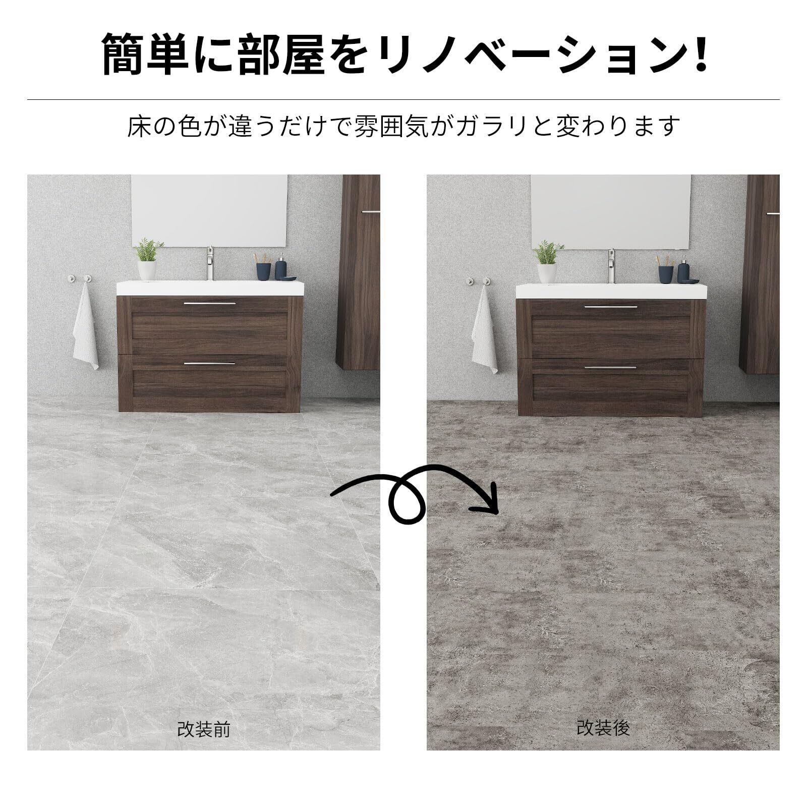 【応用広い】玄関、洗面所、シュークロ、トイレや脱衣所、リビングなどいろいろな空間で使えます。カフェや居酒屋などの店舗でも使用可能です。インテリアのベースとなる床を張り替えることで、お部屋の雰囲気をガラリと変えてくれます。また、低コストで予算も節約できます。