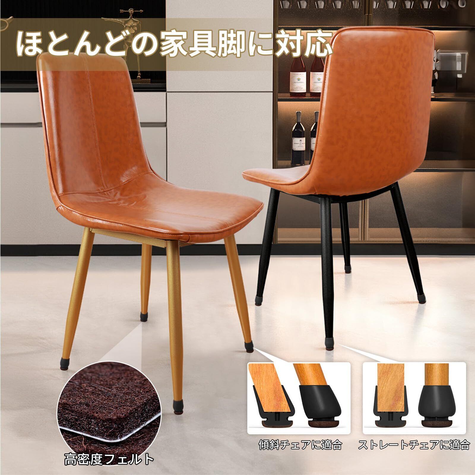 【床保護&騒音防止】椅子脚カバーの底部には厚いフェルトパッドが使用され、椅子脚の端をしっかりと包み込む。椅子脚と床が直角でなくても、傾斜した椅子の脚にも装着できます。底部のフェルトは、椅子脚の摩耗を効果的に減らし、椅子を移動させる際の床との摩擦音を低減し、自分や家族、周囲の人々に静かな環境を提供します。また、床が摩擦されることで傷つくのを防ぐのにも役立ちます。