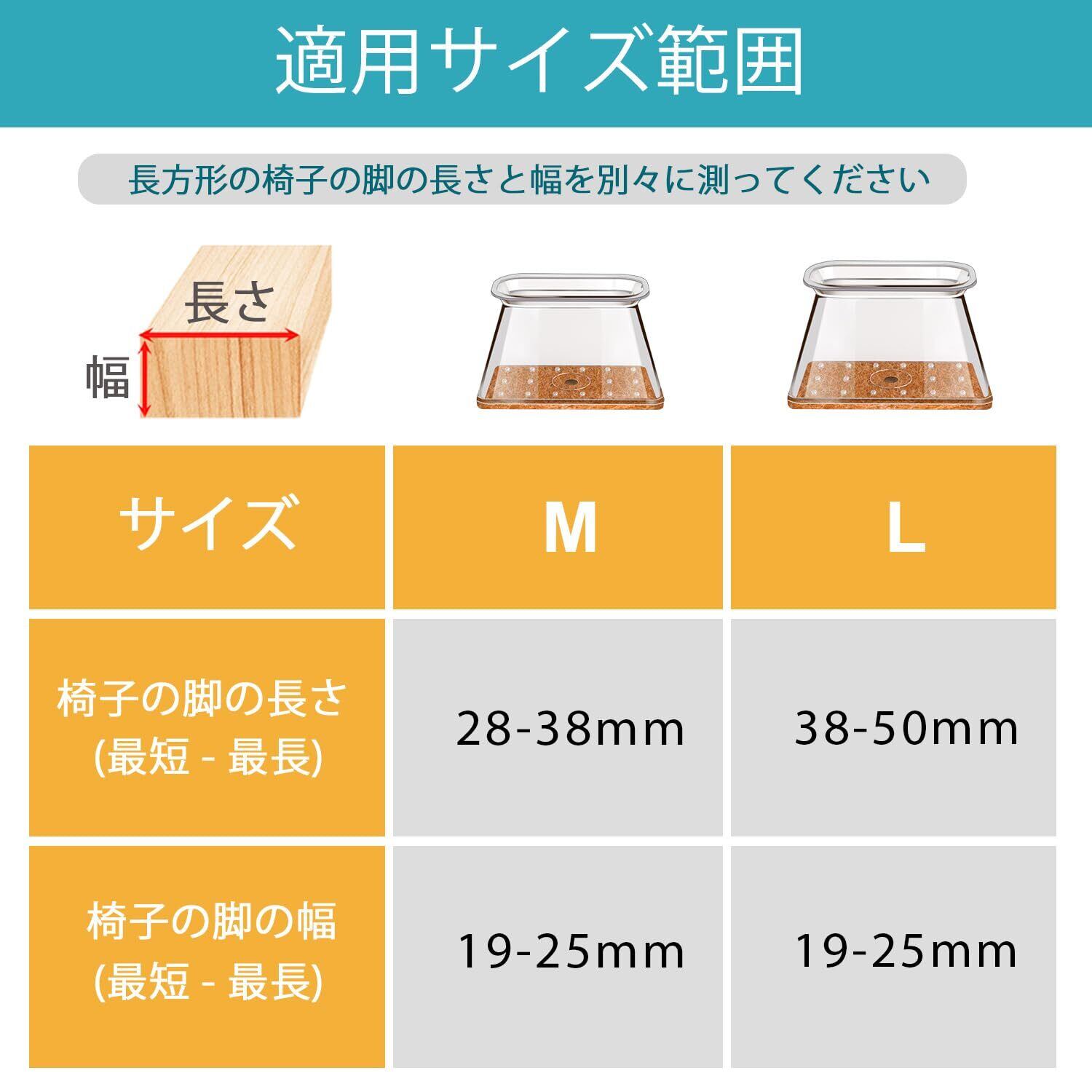 サイズ: M サイズは、長方形の脚の側面の長さが 28-38 mm、幅が 19-25 mm の家具の脚に適合します。8個セットで、複数の椅子を一度に保護でき、家庭やオフィスに便利。お得でコストパフォーマンスも高く、予備としても活用できます