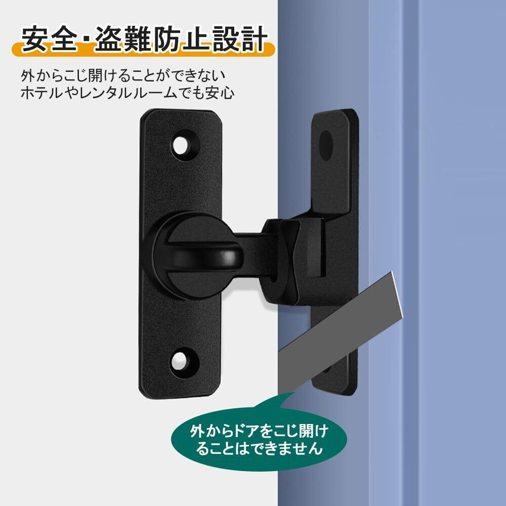 UrbanPulse ドアロック 90度/180度 補助錠 室内ドア 鍵 ロック部屋鍵後付けドアロック 後付け 亜鉛合金 防錆 耐久性 部屋 玄関 室内 ドア留め金ロック 内鍵 耐震ラッ 防犯リビング 寝室 家庭用 業務用 いたずら防止 対策取り付け簡単 (ブラック)