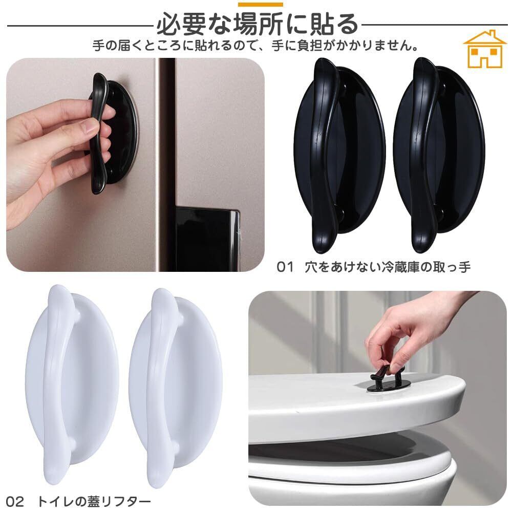 引き出し 取っ手 引き戸開閉補助 4個セット 引戸用取手 補助ハンドル 釘は必要ありません 両面テープ式 取り付けが簡単 窓/ワードローブ/キャビネット/引き出し/冷蔵庫/ガラス/ドア用 楽ちん引手 便利グッズ 引き手 (ブラック+ホワイト)