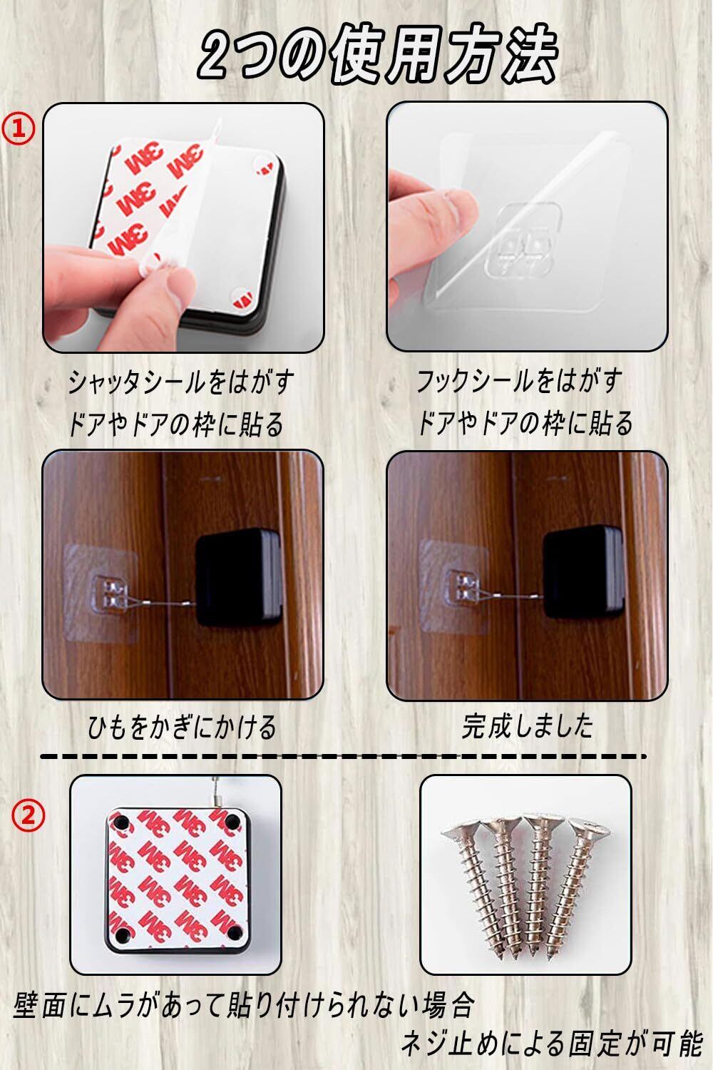 強い引張力:自動ドアクローザーは、穴のない接着剤の取り付けで、しっかりしていて、壁を傷つけず、簡単に取り付けられ、耐熱性があります。鋼線ロープは5万回の引張試験・反発試験に合格し、強い引張力を持っています。