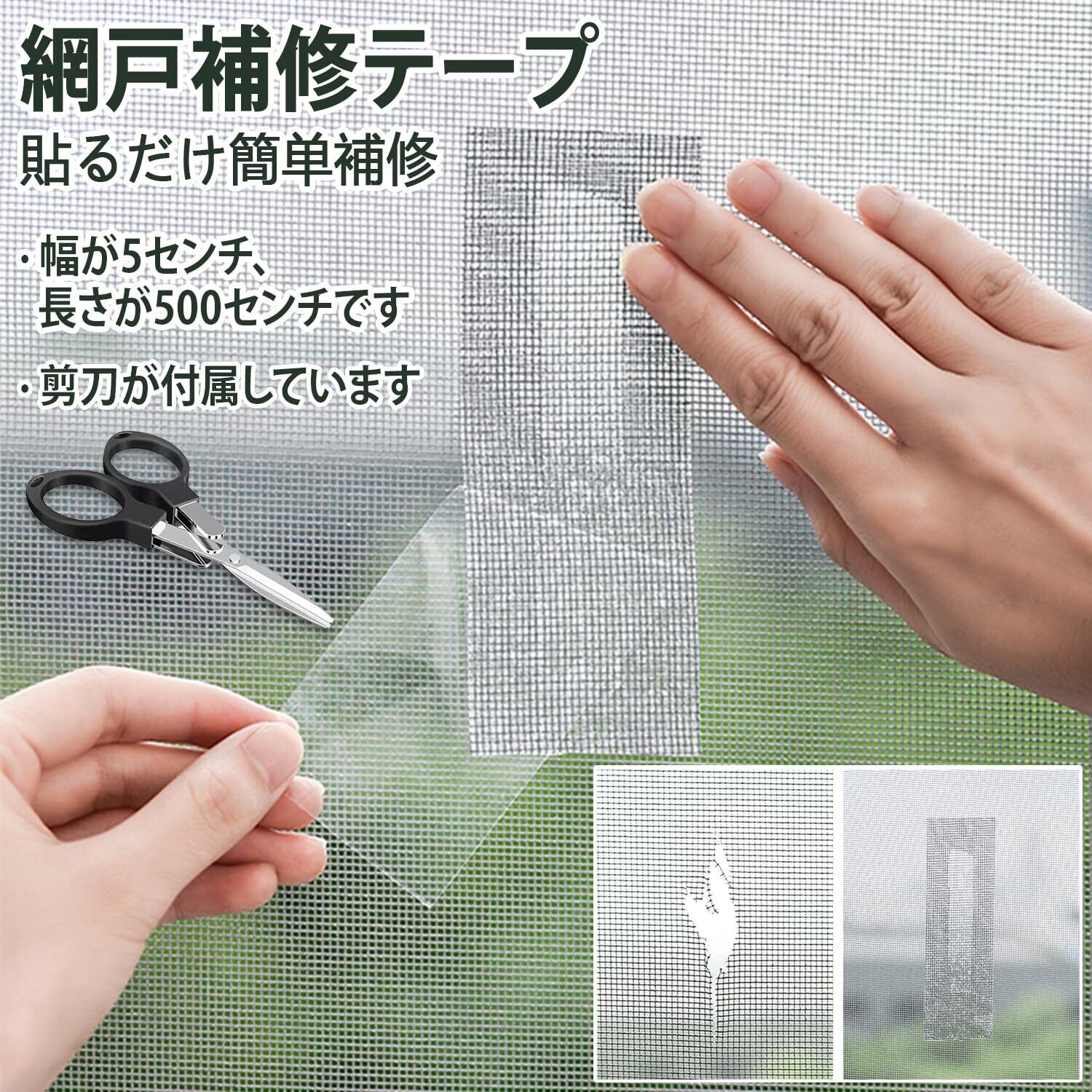 サイズ:5cm×5m/ロール、高低温に強い/上質なガラス繊維/あなたやご家族に優しい。この網戸 補修セットテープは、ドアや窓を問わず、すべての網戸を簡単に修復することができます。