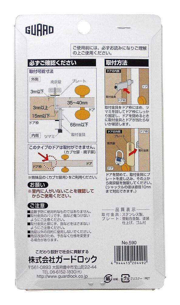 ガードロック コンビネーションロック 外開き一枚扉用物件管理ロック一般扉用No.590 シルバー