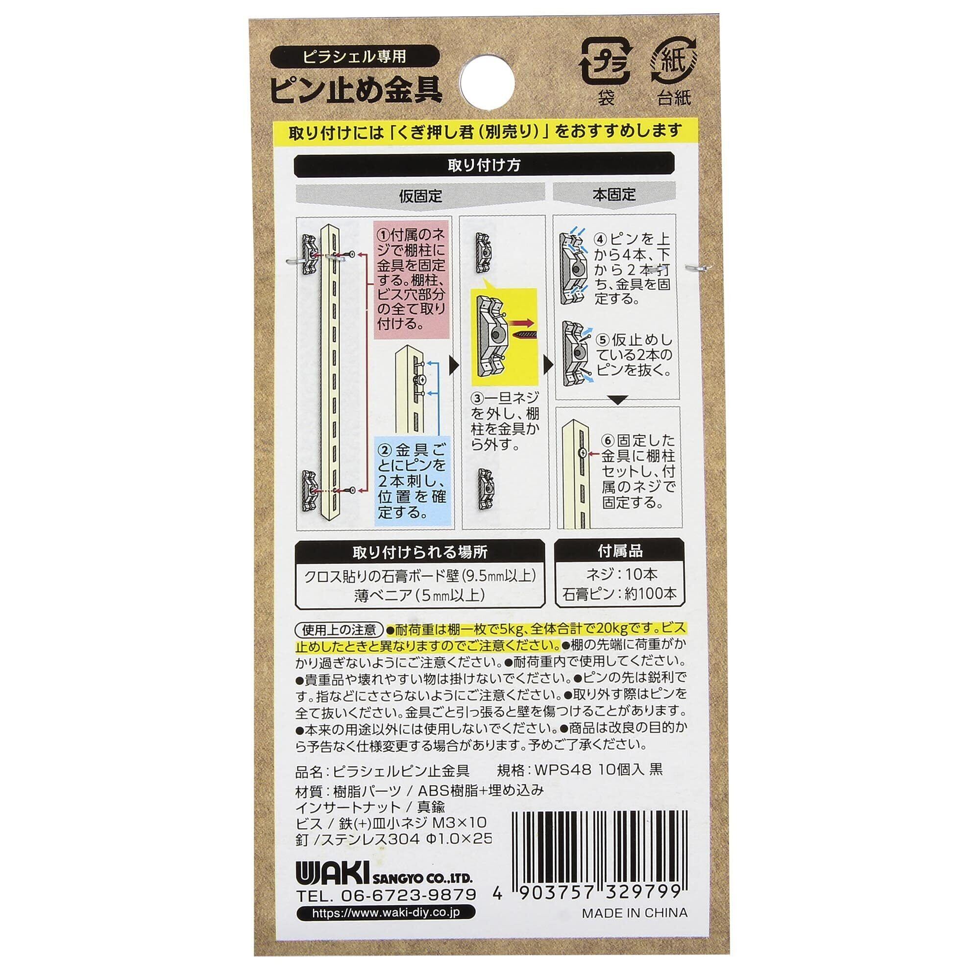 和気産業(Waki Sangyo) ピラシェルピン止め金具 ピラシェル専用金具 棚柱 石膏ボード 取り付け 10P 黒 WPS48