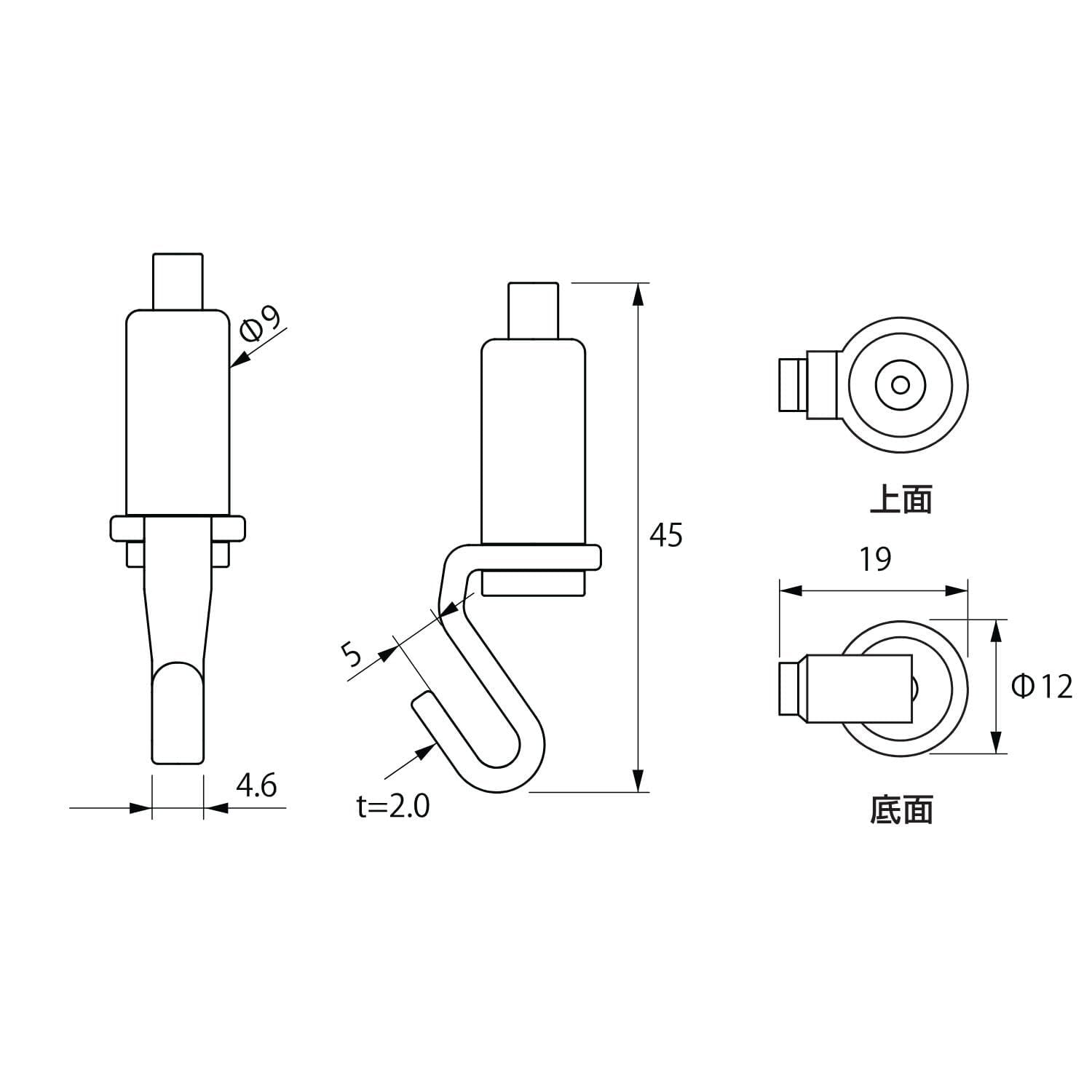 フック形状の自在金具とワイヤーがセットになった吊下げ金具です。