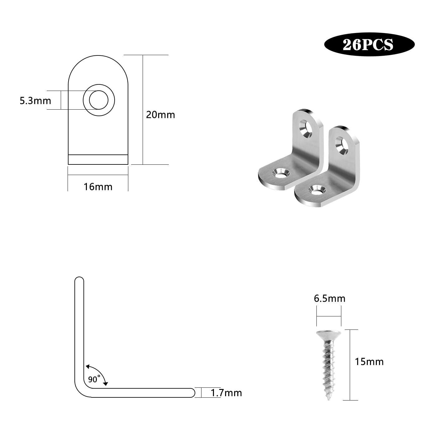ANZOBEN L字金具 アングル金具 接合金具 直角ブラケット アングルブラケット コーナーブレース ステンレス製 専用ネジ付き 20*20*16mm 26個