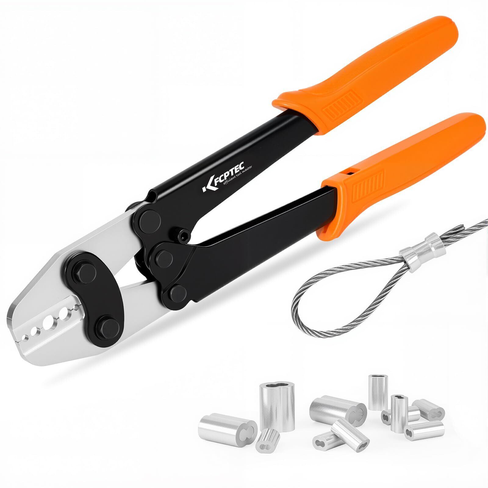 KF CPTEC ワイヤーロープ圧着工具 3/64〜1/16インチ対応|オーバル・ダブルアルミスリーブ用 圧着ペンチ|滑り止めハンドル付き 耐久構造
